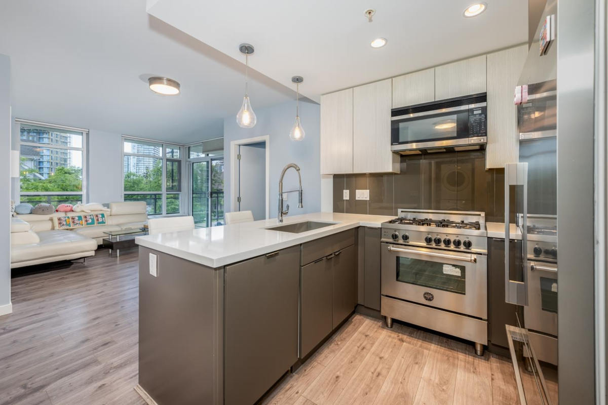 **Rare Premium 7-Storey Concrete Mid-Rise Condo - 5 Min Walk to Burquitlam Station** Enjoy superior soundproofing and no elevator wait times in this exceptional corner 2-bed, 2-bath unit with a 209 sqft covered balcony. Both bedrooms are ensuite, featuring five full-size closets, a full-size pantry, stainless steel European appliances, a GAS RANGE (included in strata fee), full-size fridge, dishwasher, and washer/dryer. Includes 1 EV-ready parking stall, an oversized locker, and portable AC. Plenty of street parking available. Quiet location steps from YMCA and SkyTrain, shopping, restaurants, direct transit to SFU. This condo offers everything you need for comfortable and convenient urban living, perfect for young professionals or growing families.