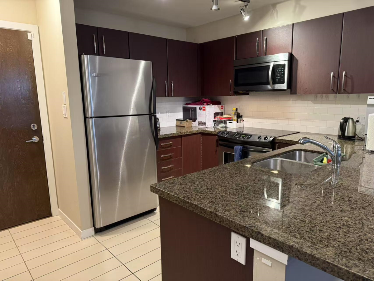 Cadence in Burnaby South - Rarely available! Extra large (725+ square feet) One bedroom located in a quiet, residential neighbourhood in prime Burnaby South. Just steps away from Royal Oak Skytrain, Michael J. Fox Theatre, McPherson Outdoor Pool plus both an elementary and high school. Spacious interior design features 9-foot ceilings, engineered hardwood floors, granite countertops and stainless steel appliances. Luxurious over-sized bedroom with walk-in closet has plenty of space for a King-size bed. Large, private balcony. Insuite laundry, 1 parking & 1 storage.