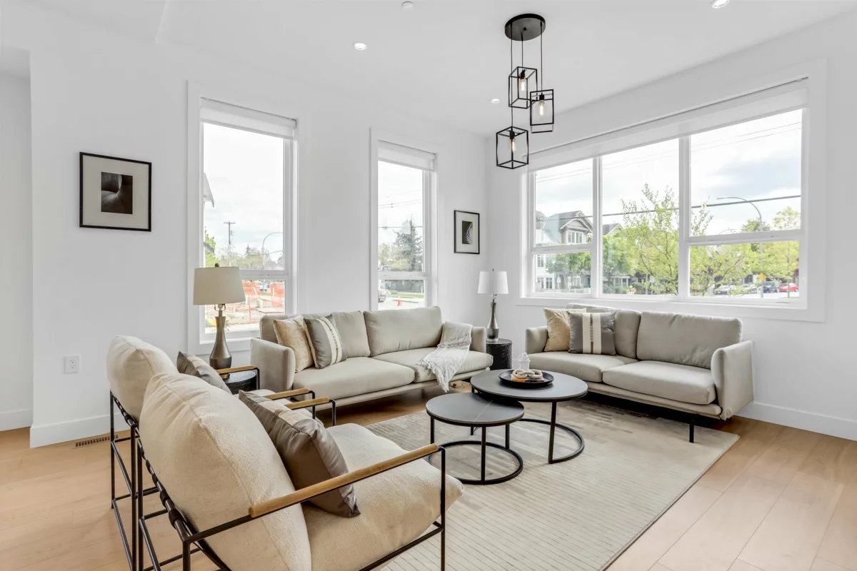 Step into luxury with this stunning, brand-new three-storey middle unit row home--designed for modern living and unbeatable convenience. The main floor showcases a bright, open-concept layout featuring a spacious living room, elegant dining area, cozy family room, gourmet main kitchen, and a bonus spice kitchen--perfect for entertaining or family meals. Upstairs, enjoy a private master retreat complete with an ensuite, plus three generously sized bedrooms and a full bathroom. The fully finished basement offers a large rec room with a full bath, plus a separate entrance to two bedrooms, a living room, and an additional bathroom. Best of all, there are NO strata fees! Located just minutes from schools, shopping centres, and quick access to Highway 1, this is the perfect place to call home.
