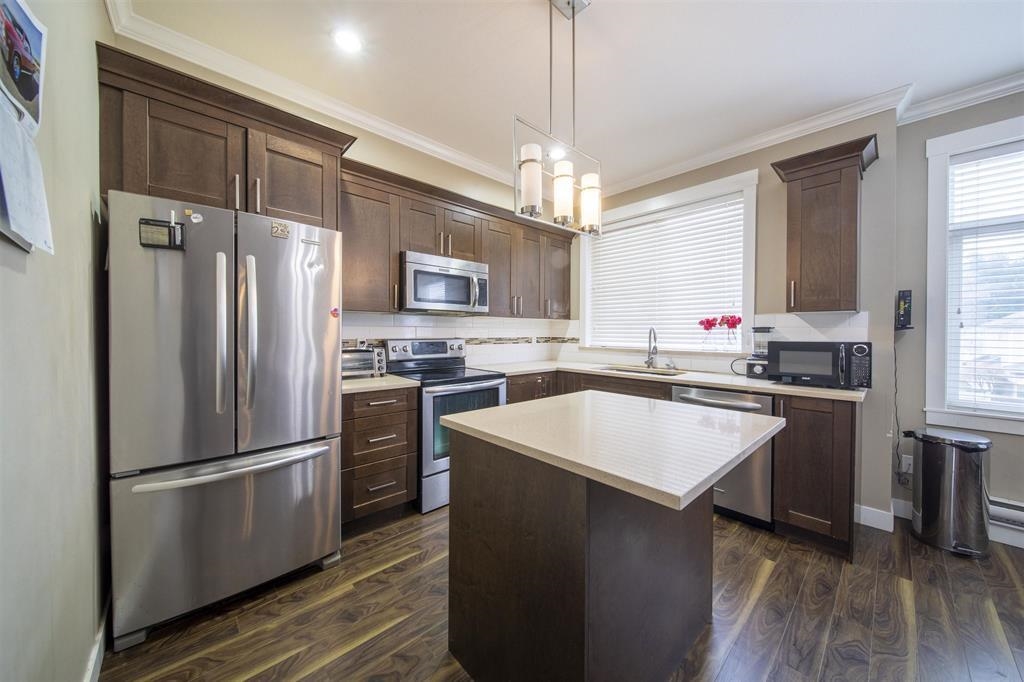 Grand Heights townhouses!!!! Very private location, 21 town homes, 4 bedrooms, side by side double garage. Great plans, 9' ceiling, on main floor, facing east, south and west with lots of natural lights. Plenty of extra street parking for guests & convenient front door access. Quartz countertops, crown mouldings, Maytag stainless steel appliances, bigger backyards, close to bus services, sky train. Private bedroom & bath on lower level is ideal for teens & in-laws, can be mortgage helper with separate entrance. Home is ready to view. Corner unit.