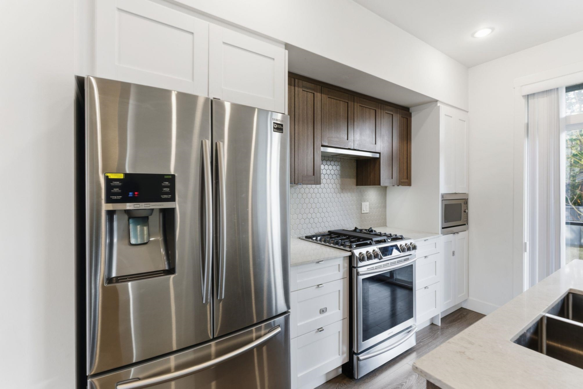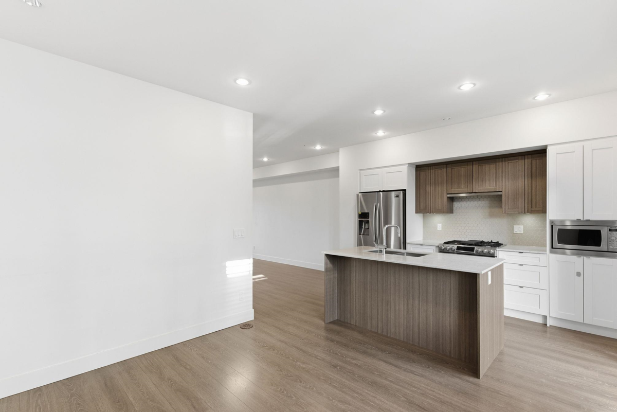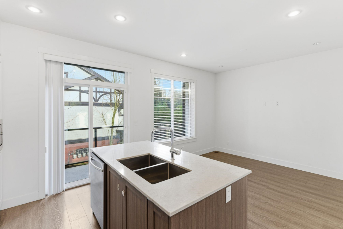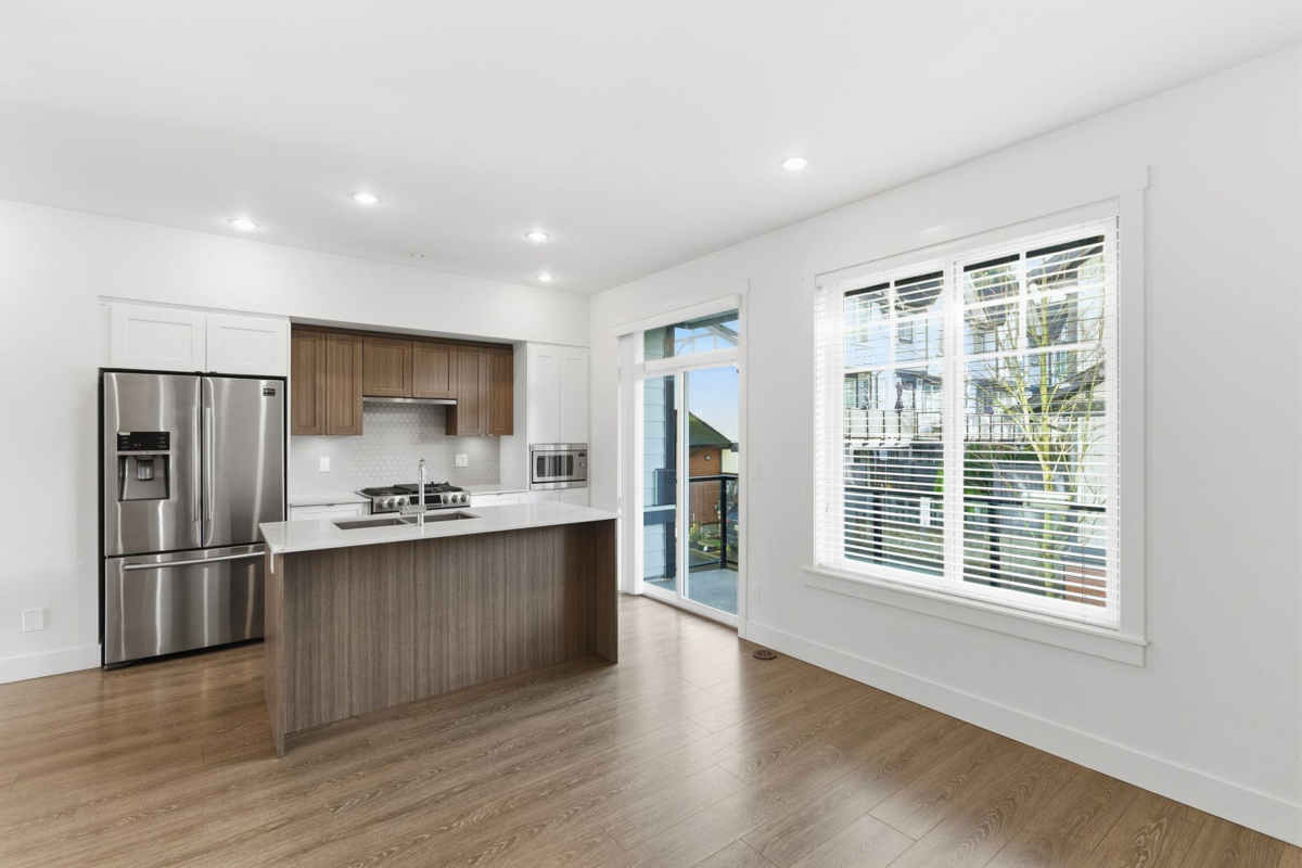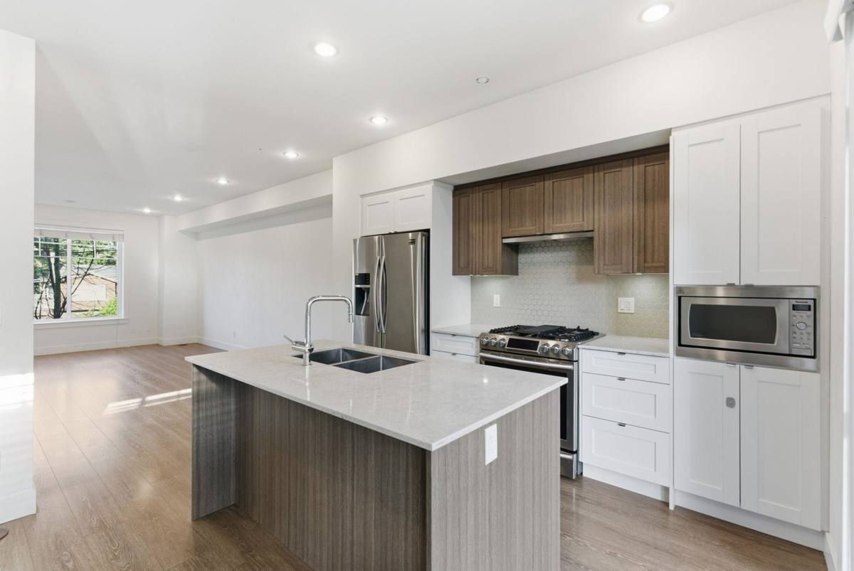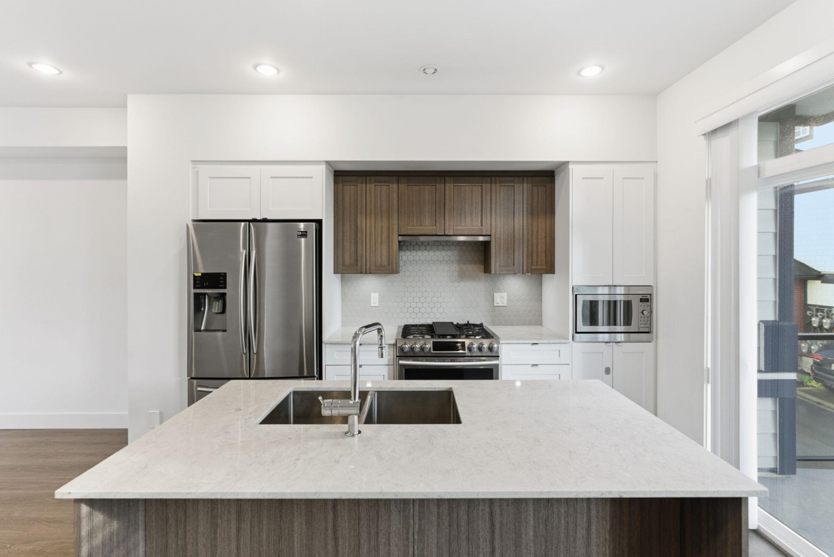 Chelsea Gate in Sunshine Hills offers exceptional space, comfort, & versatility in this 4-bed, 4-bath townhome. Built in 2018, the home spans almost 1700 sq ft & is ideal for multi-generational or growing families or those seeking room for a home office or live-in help—plus the benefit of low monthly strata fees & rental flexibility. Main floor showcases a light-filled, open layout with a stylish kitchen equipped w/ a gas cooktop, soft-closing cabinetry, & seamless flow to a sun-exposed patio. Upstairs you find 3 well appointed bedrooms and 2 baths. A private fourth bedroom w/ its own ensuite on the lower floor provides excellent separation for guests or extended family. A side-by-side double garage with extra ceiling height and custom storage adds both convenience and functionality. Surro