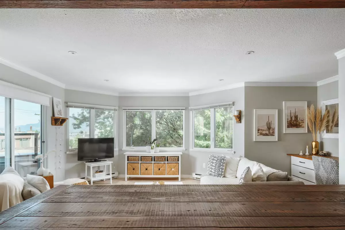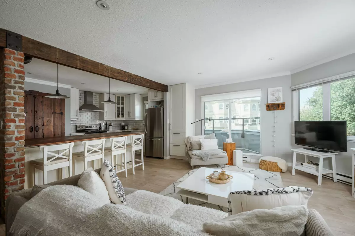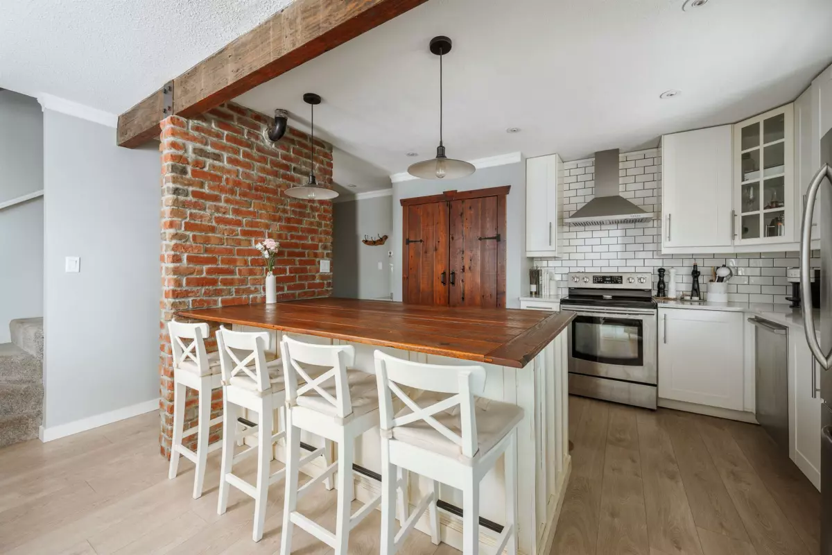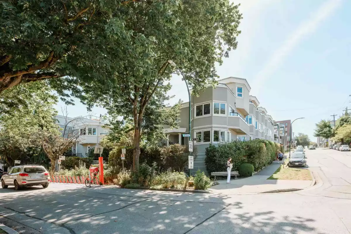 2 STOREY CONDO | TASTEFULLY UPDATED | ROOFTOP DECK | Quietly tucked away on a no-through road, sits this modern, 2 storey, corner condo in Fairview slopes. Just steps to Granville island, false creek, sea wall and water taxi, all restaurants, convience. LAYOUT; 774 SQFT w/ open concept front of mind + plenty natural light. 2 storey's; living + kitchen on main level. Full 3 piece updated bathroom, primary bedroom with in suite laundry upstairs, that walks out to your 145 sqft, private, rooftop deck with OCEAN, MOUNTAIN AND CITY VIEWS! FEATURES; New laminate flooring, neutral paint + baseboards. Kitchen complete with white shaker cabinets, custom built in pantry, quartz counter tops, large island made with reclaimed wood providing extra storage underneath. Complete with 1 parking.