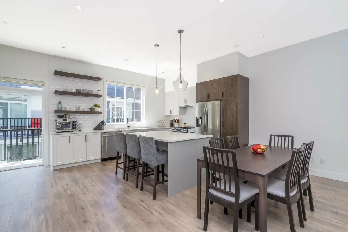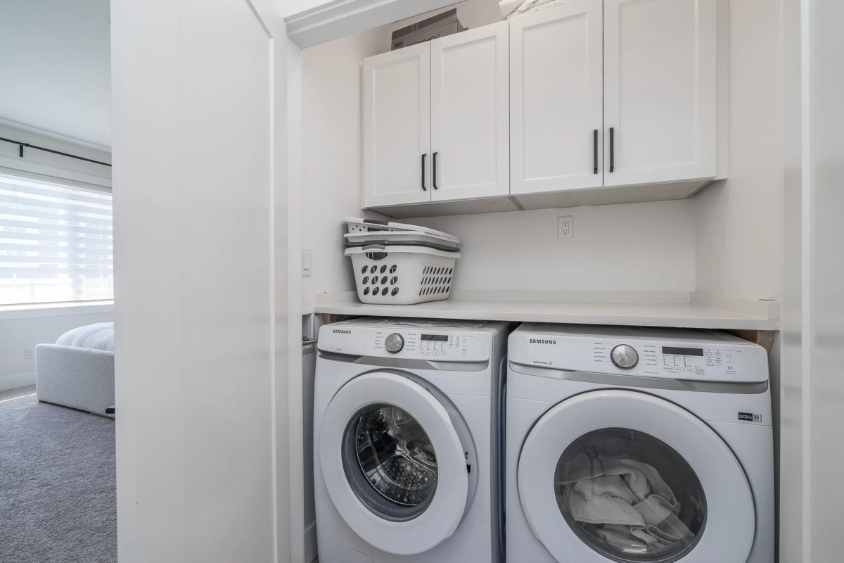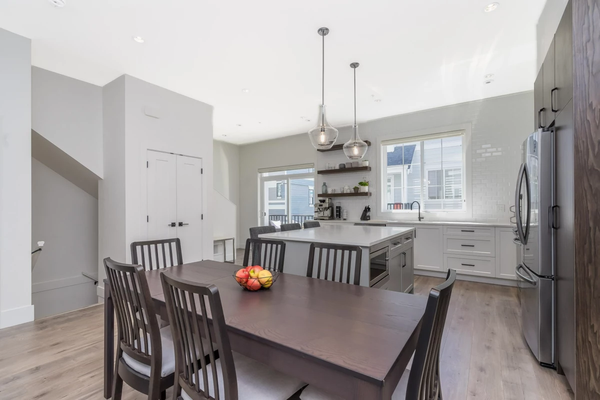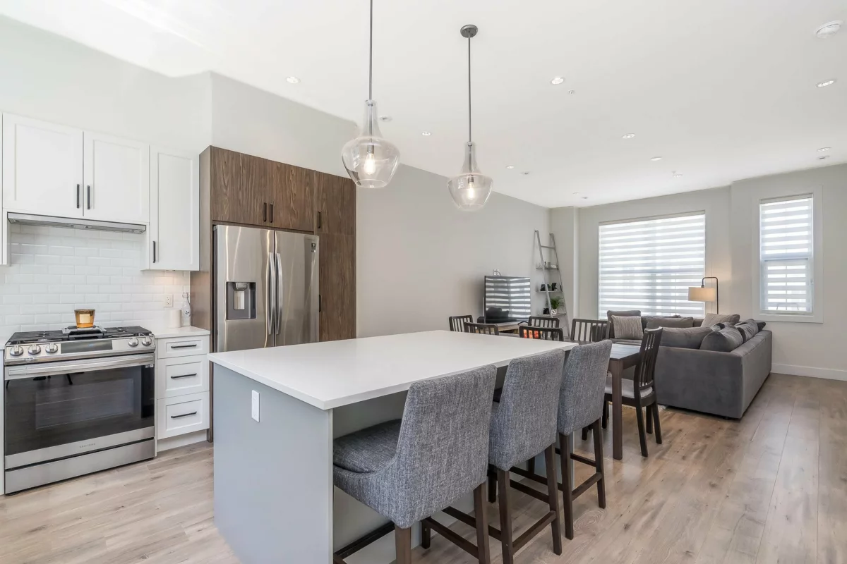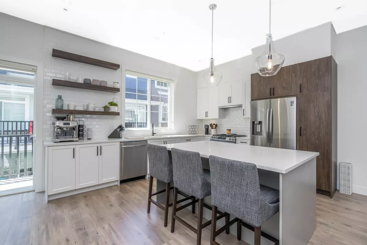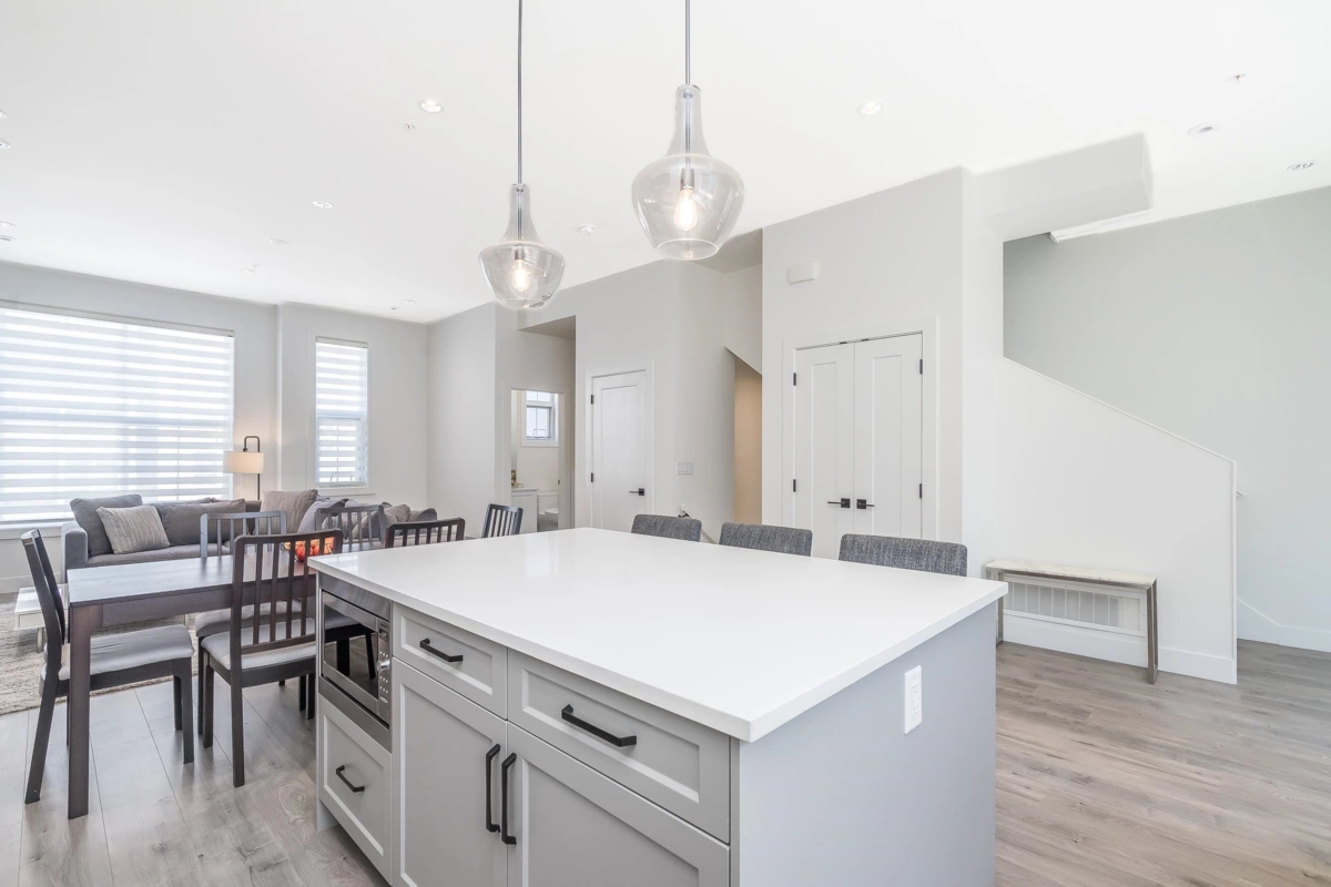 Stunning 4 bed / 4 bath end-unit townhouse in the sought-after Boutique Skylark community. This beautifully designed home features a chef’s kitchen w/a large island, premium finishes, and generous storage, perfect for both everyday living and entertaining. The bright open layout offers 10-foot ceilings & a spacious living area filled w/ natural light. Upstairs the luxurious primary bedroom boasts a spa-inspired ensuite, alongside two additional well-sized bedrooms & convenient upper-level laundry. The lower level provides a versatile fourth bedroom or home office complete w/a private bathroom & extra storage. Additional highlights include central air conditioning, a high-efficiency furnace, and a rare side-by-side garage. Ideally located within walking distance to Carvoth Park.