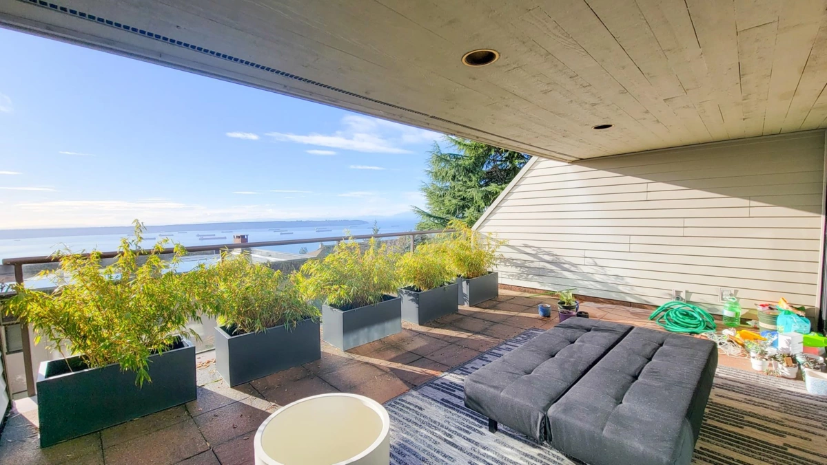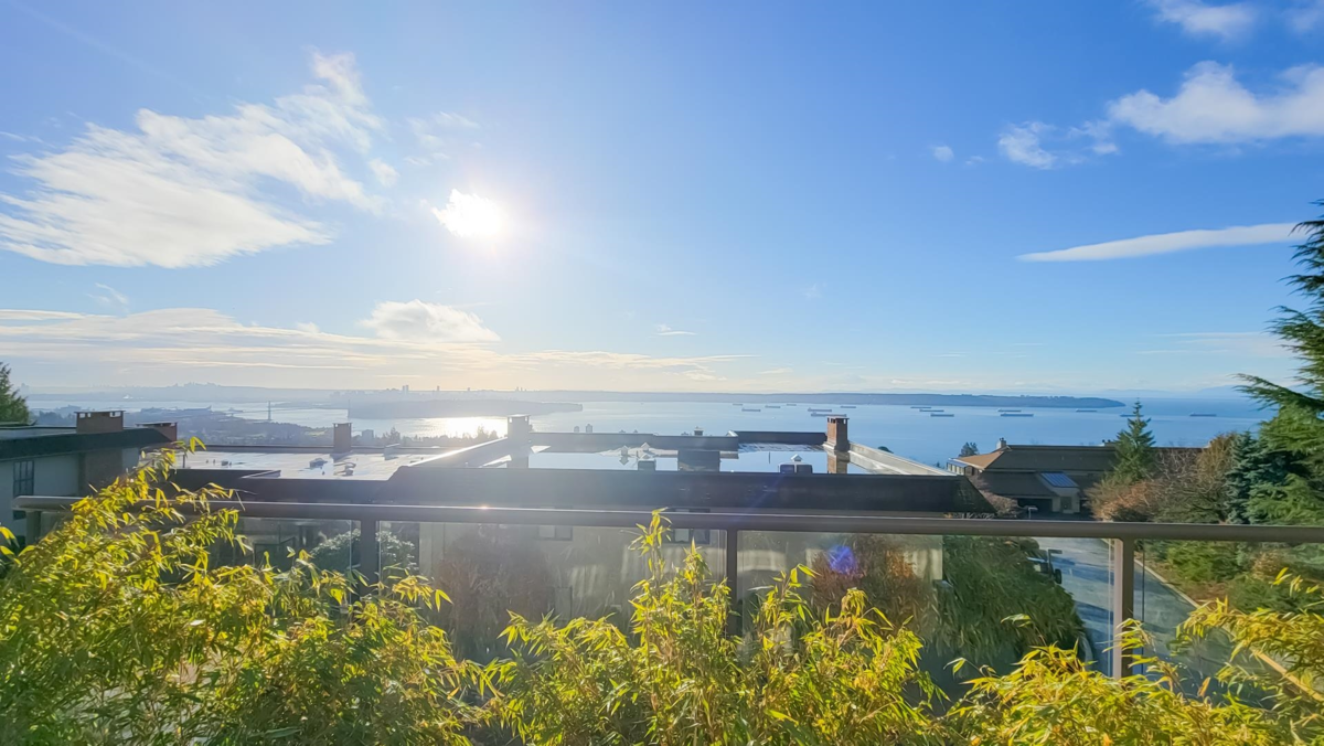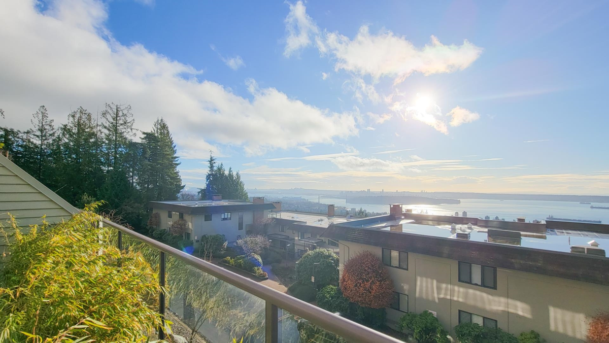 Fabulous water views from Lions Gate to UBC, this large 2 Level 2 Bedroom plus Den suite in Panorama Gardens has everything you need to live life well. The main level consists of a kitchen with stainless steel appliances, bamboo cabinets, overlooking dining/living area with Italian hardwood floors and access to large covered sundeck. The lower level features a primary bedroom with custom design walk-through closet and quartz counter top in full ensuite, a second bedroom, full bath, laundry room, den/office, and in-suite storage area. Also includes a large storage locker plus 2 parking stalls right next to entrance. All of this is within a well-run strata with a tennis court, in-door swimming pool, lounge, and gym in the club house. Pets and Rentals allowed.