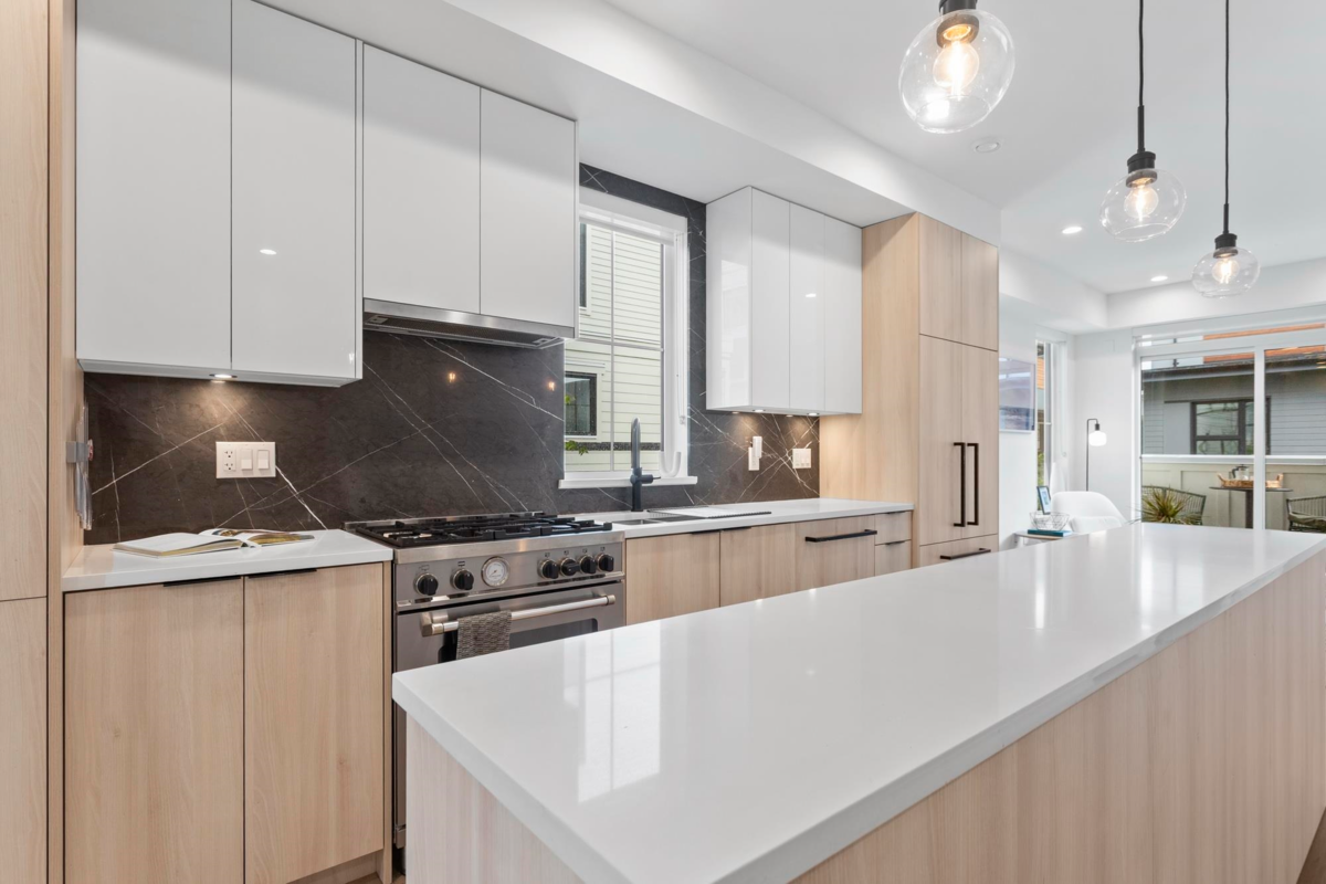 Step into design-forward living at in Toppen Ridge—an elegant corner 3-bedroom, 2-bath corner townhome by Formwerks, tucked into the courtyard. The top floor is devoted entirely to a spacious primary suite with views and a spa-like ensuite. A large second bedroom and a cozy third—ideal as a baby room or home office—offer flexibility. Premium finishes include EV Charger, radiant in-floor heating, A/C, wide-plank vinyl flooring, Fisher & Paykel fridge, Blomberg dishwasher, quartz countertops, and sleek Kohler fixtures. With two private patios, a vibrant community of wonderful neighbours, and full remaining home warranty. Steps from the Spirit Trail, Moodyville Park, & minutes to Lonsdale’s shops, cafes, and SeaBus—urban convenience meets modern tranquility. OPEN HOUSE Sat. Sept 13 11am-1pm.