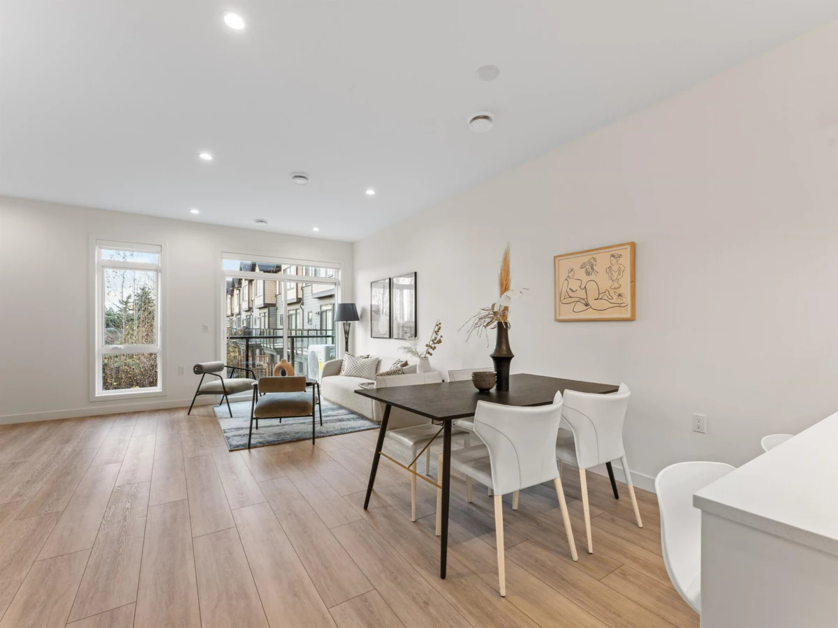 Take advantage of the GST rebate offered to First Time Home Buyers. 5% deposit! FINAL PHASE @PARC THOMPSON.38 beautifully crafted Townhomes by DAVA. Early spring move in. Well designed interior with MANY UPGRADES. ALL NEW HEAT PUMP / AC. Sleek fixtures for bathroom & kitchen. MASTER CLOSET ORGANIZER WITH AUTO LIGHTS. Spacious private yard. Across from park and Dyke. Perfect for morning or evening walks. All levels of shopping.Starlight casino, Walmart Power Center, Costco business and more. Easy transit to 22nd skytrain. Lock in your value $$ and TRY YOUR OFFER. Display unit #13. Open house Sat & Sun 2-4pm. Call before coming.