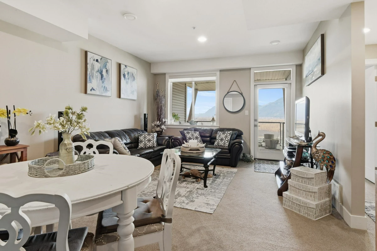 Nestled in the prestigious & stunning community of The Seasons at Cedar Sky, this exceptional townhouse offers a peaceful sanctuary high above the Fraser River w/truly spectacular views. Showcasing upscale West Coast architecture, this immaculate 3,000+ sq ft, 3 level walk-out basement home features a gourmet kitchen finished w/stainless steel appliances & a built-in patio sound system for effortless entertaining. The main level boasts 9' ceilings, a spacious entry & an open-concept layout w/spacious room sizes. Oversized windows & balconies on every level capture sweeping 180° views of the surrounding mountains & the Fraser River. With 4 bdrrns, abundant storage, air conditioning & a double garage & driveway parking for 2, this home delivers luxury, comfort & unforgettable scenery.