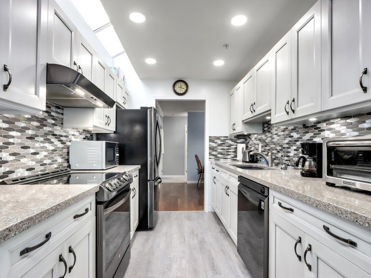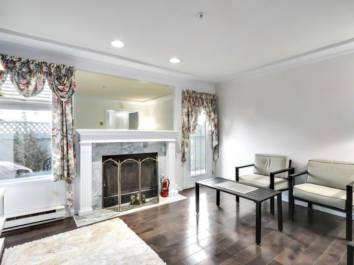 Welcome to Harbour Ridge located at the top of the Barnet Hwy! This well-maintained 3-bedroom offers the convenience of single-floor living. The living room has a marble hearth and a wood-burning fireplace, with access to your large private fenced-in yard. The kitchen was renovated May 2021, it boasts all matching LG appliances, a water filtration system, quartz countertops, premium Thomasville cabinets and a bonus large pantry. This property is close to SFU, grade schools, bus transit, Kensington Plaza, local shops, Burnaby mountain hiking trails, recreational facilities and more. Comes with two underground parking spots. Building exterior painted fall 2023. Priced under BC assessment!!
