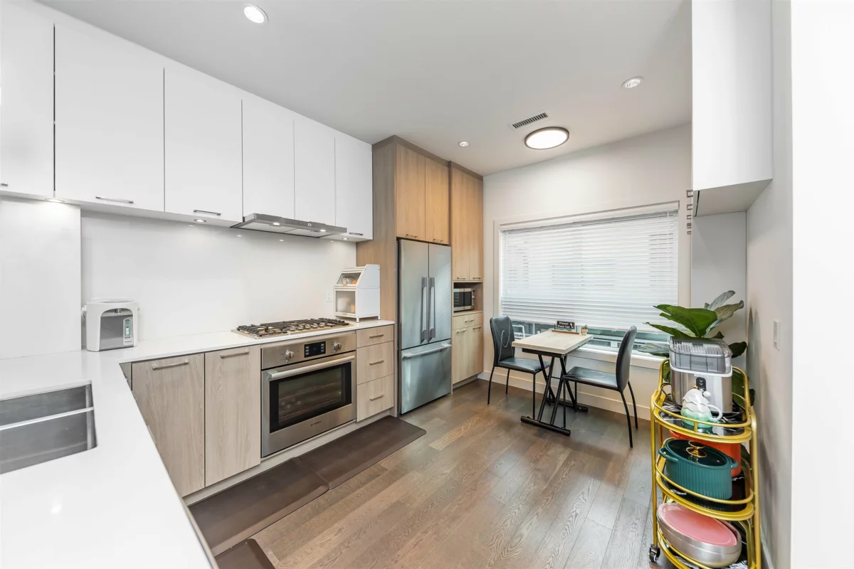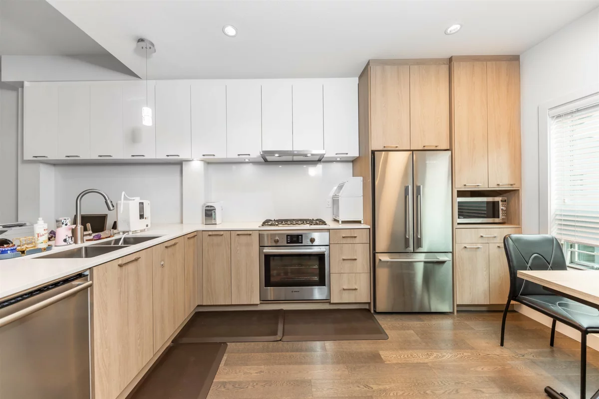 La Verna - 3 bedrooms, 2.5 bathrooms townhouse in the heart of Richmond's Granville area. This Beautiful townhouse features wood flooring throughout, bright and functional layout with high ceilings, large windows and air-conditioning. The open kitchen is equipped with high-end appliances, quartz countertops and modern cabinetry. Spacious bedrooms offer comfort and flexibility for families. Situated in an excellent school catchment: J.R. Burnett Secondary and McKay Elementary School. Walking distance to Thompson Community Centre, schools, bike park, playgrounds and public transit. Just minutes' drive to Blundell Mall, Olympic Oval, and Richmond Centre. Exceptional style meets prime location - Don't miss out!