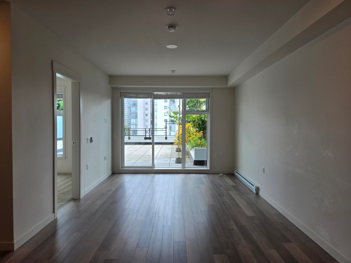 Welcome to "CAPITOL" by Porte Homes, central location in New Westminster. Walking distance to Columbia Skytrain station, Douglas College, Shops, Restaurant, Parks and more. This one bedroom plus den home features open concept layout with over height 9' ceilings, plank laminate flooring, porcelain tile in bathroom, gourmet kitchen completed with sleek caesarstone countertops and full size stainless steel appliances. This Sweet home is also included approx. 480sf patio facing Southeast.