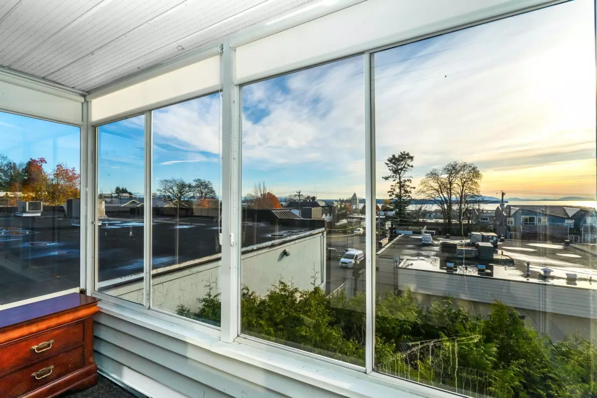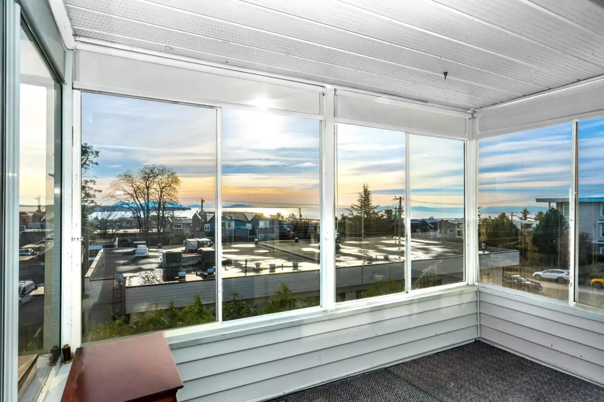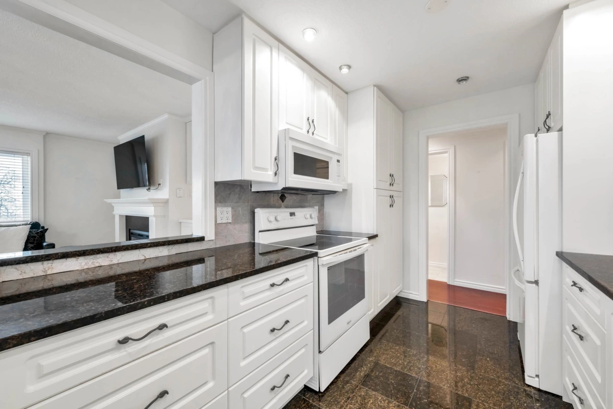 Enjoy breathtaking 180° ocean views from this beautifully renovated 2 bed, 2 bath home in the heart of White Rock. Thoughtfully updated throughout, it features rich wood flooring, granite countertops, custom built-ins, generous storage, and a sleek electric fireplace that adds both warmth and modern style. California shutters open to a spacious 138 sq. ft. wraparound enclosed balcony, seamlessly extending your living space and offering the perfect place to relax and soak in year-round coastal views. Just steps from the vibrant heart of uptown White Rock, where shops, cafés, and local charm create the perfect coastal lifestyle. This is more than a home; this is ocean-view living at its finest!