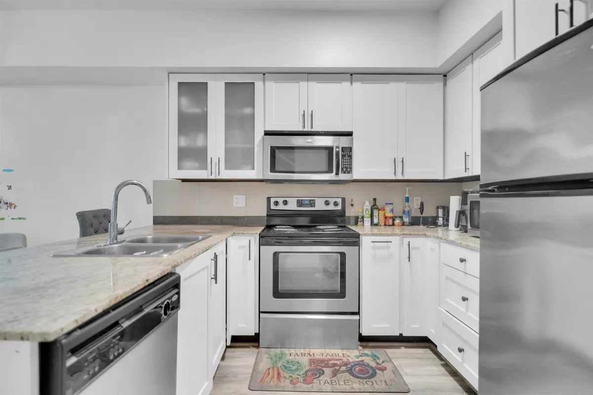 Best-Priced Townhome in Surrey City Centre! Renovated 3-bed + large den, 2.5-bath beauty with modern finishes, style & comfort. Steps to Forsyth Rd Elementary, 900m to SkyTrain, bus at your door. 5 mins drive to Hwy 1. Walk to shops, dining & groceries. Includes 2 secure underground parking spots, storage locker, EV chargers, bike room & party hall. Don’t miss this rare find!