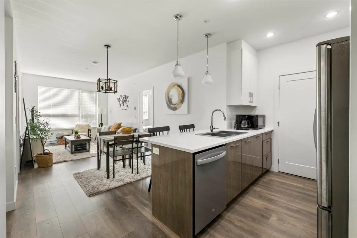 Immaculately kept, this 2 bed 2 bath condo with a den is located in the heart of Willoughby. Offering a bright, open concept living space, the kitchen features stainless steel appliances and a breakfast bar. The primary bedroom comes with an ensuite, the second bedroom is perfect for guests or a home office. The den offers flexibility for work or leisure. Situated in a quiet, private setting facing the courtyard, this condo is just steps away from Willoughby Town Centre, offering shopping, restaurants, and grocery stores. Plus, you’re less than 10 minutes to Highway 1, making commuting a breeze. Its an unbeatable location don’t miss your chance! Contact us for a private showing.