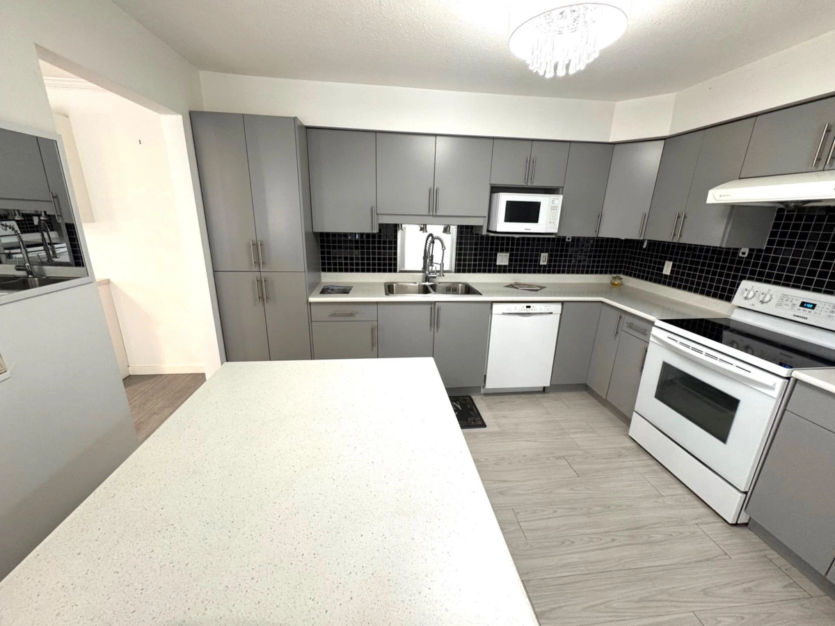 Tiffany Park, come check out this charming renovated, move in ready corner unit! This stunning 1217 sq. ft. 2 bed, 2 bath home has a great layout with generous sized rooms and tons of storage space. Tastefully updated featuring a new gourmet kitchen with island, new appliances, new flooring, new light fixtures, updated bathrooms. Being a corner unit you get lots of additional windows which provide great natural light . Situated on the quiet side of the building. This 55+ adult oriented complex is centrally located, walking distance to shopping, restaurants, parks, recreation & a short walk to Mill Lake. 1 underground parking stall included, pets are not allowed. Bonus: Heat, hot water, gas & electricity are included in the Strata fee!