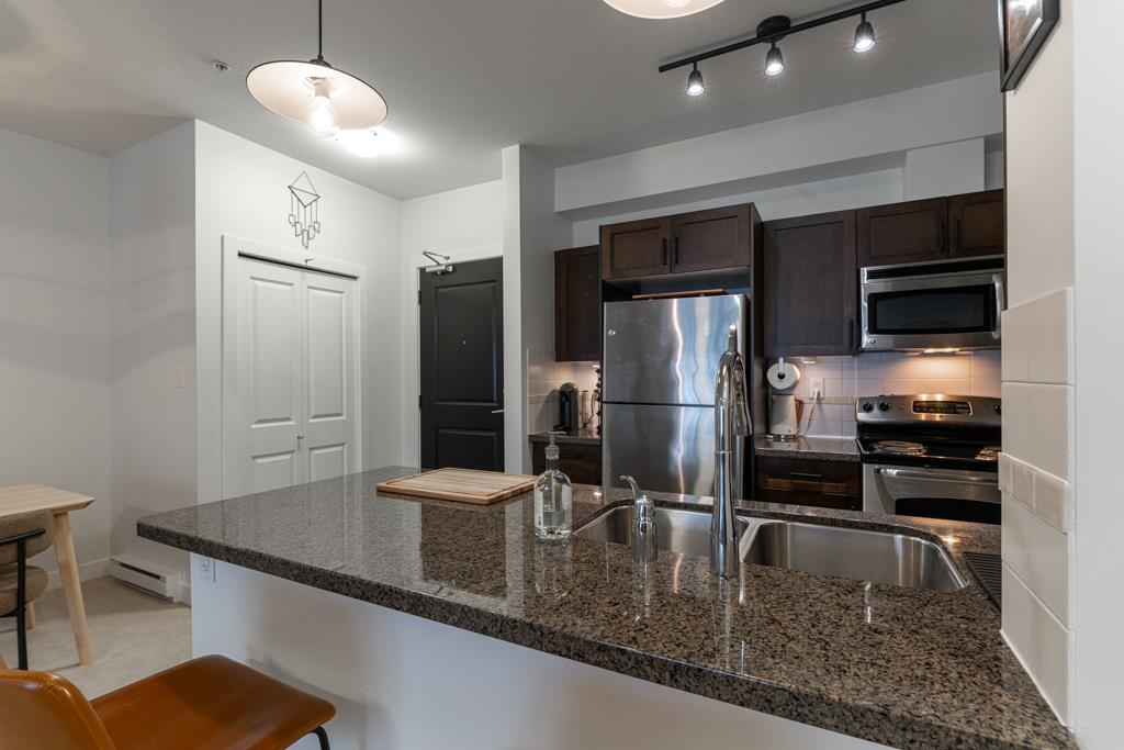 Here it is! This bright and beautiful 2nd floor unit is located on the West side of the building in the Gallantree. Boasting over 900 sqft of living space, with 2 bedrooms and 2 bathrooms, this unit has a great layout with 9 ft ceilings, granite countertops, a large living room and bedrooms on opposite ends of the unit. 1 dog or 1 cat allowed, with no size restriction. 2 parking stalls. This complex is in a great location close to all amenities. This unit shows great. Nothing to do but move in.