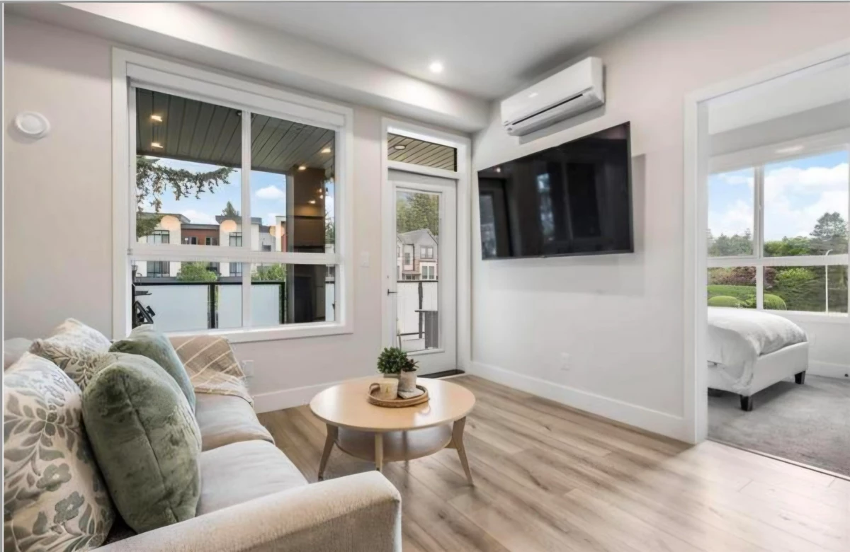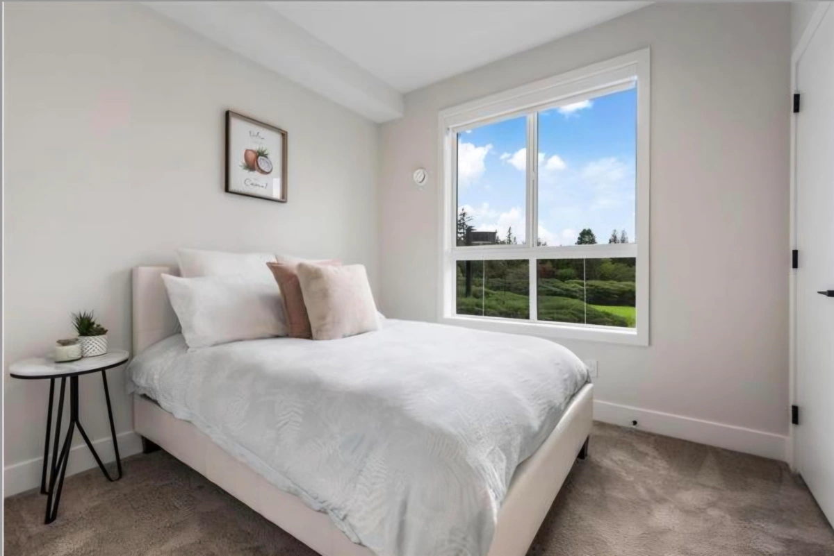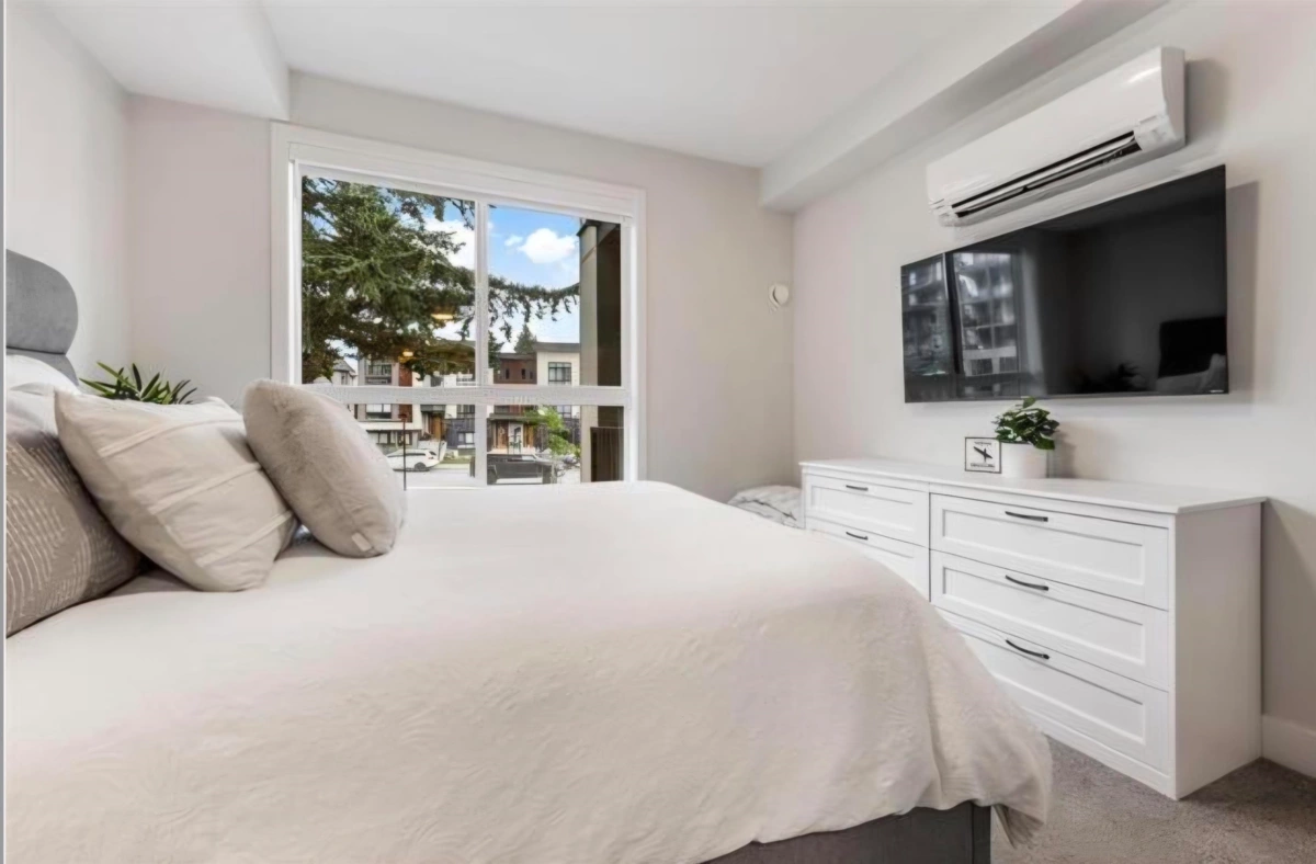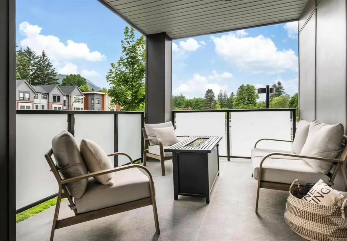 Live your best life!! NO GST ON THIS QUIET CORNER UNIT. 246 SQ FT EXTRA LARGE COVERED DECK. 2 BEROOMS AND A DEN. 2 FULL BATHROOMS. This unit boasts stunning PARK and MOUNTAIN views. Nestled in Sardis charming Garrison Campus. This is a master-planned community designed to make life easy. "The York" by Diverse Properties is built by the same developers of Garrison Crossing and River's Edge. This community includes all amenities, the Canada Education Park, Vedder River, shops, restaurants and grocery store & pharmacy all within a 5 minute walk. This modern condo feature quartz countertops, stainless steel appliances and an efficient heat pump to keep you cool in the summer & warm in the winter. Further upgrades include built in closets and pantry and private frosted glass around patio