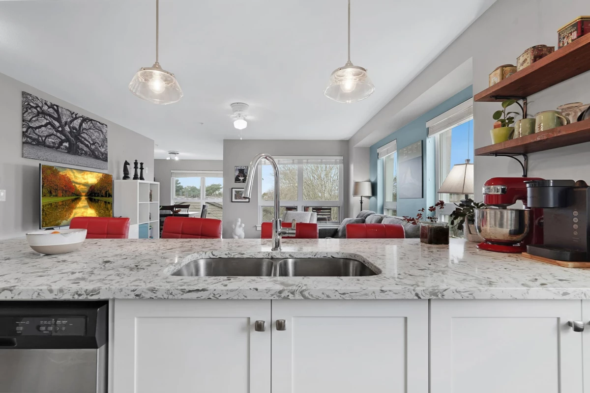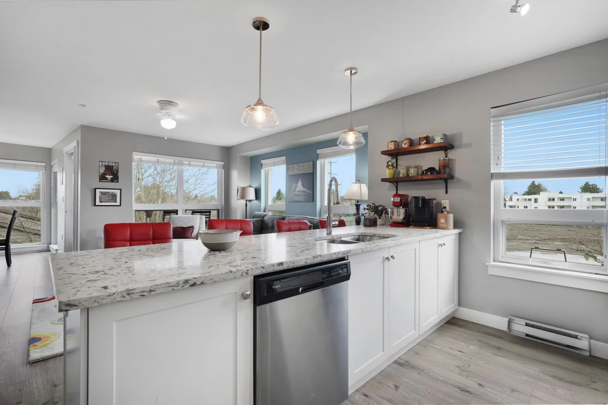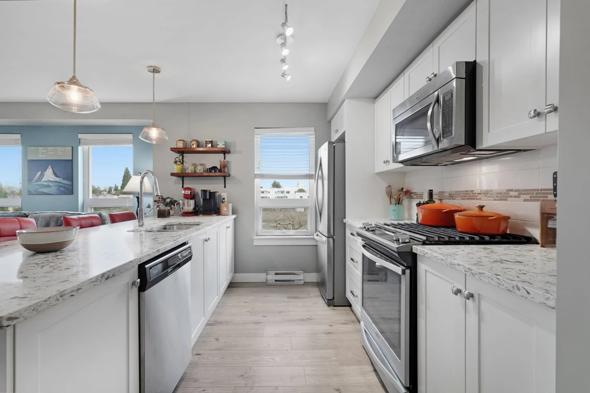 Welcome to The Pointe, one of Ladner's most sought-after boutique condo buildings. This bright, open corner unit offers an exceptional layout with large windows, abundant natural light, & a seamless flow for everyday living & entertaining. Enjoy both a private balcony & access to a fantastic rooftop deck, perfect for relaxing, socializing, & taking in the surrounding community. Gas BBQs allowed, making outdoor living a true extension of your home. The unit includes two parking stalls, a rare & valuable feature. Located in a highly walkable pocket, you're steps to shops, coffee, restaurants, parks, & all the Ladner Village has to offer. A perfect opportunity for downsizers, professionals, or anyone seeking modern, low-maintenance living in a vibrant, community-focused neighbourhood.