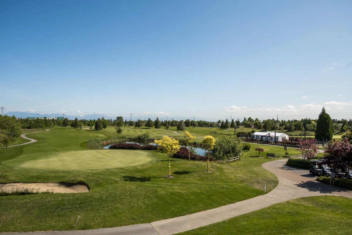 Stunning corner unit with incredible views of the golf course and North Shore mountains. This spacious 1,555 sq ft home offers 2 bedrooms, a den, and 3 baths in a beautifully designed layout. The open-concept kitchen is perfect for entertaining. Enjoy 2 decks - one off the main living area and a second off the den overlooking a serene water feature. The bright, airy layout feels more like a house, with a luxurious primary suite and flexible den space. Includes 2 parking stalls. Experience Tsawwassen's resort-style community, perfect for year-round enjoyment!