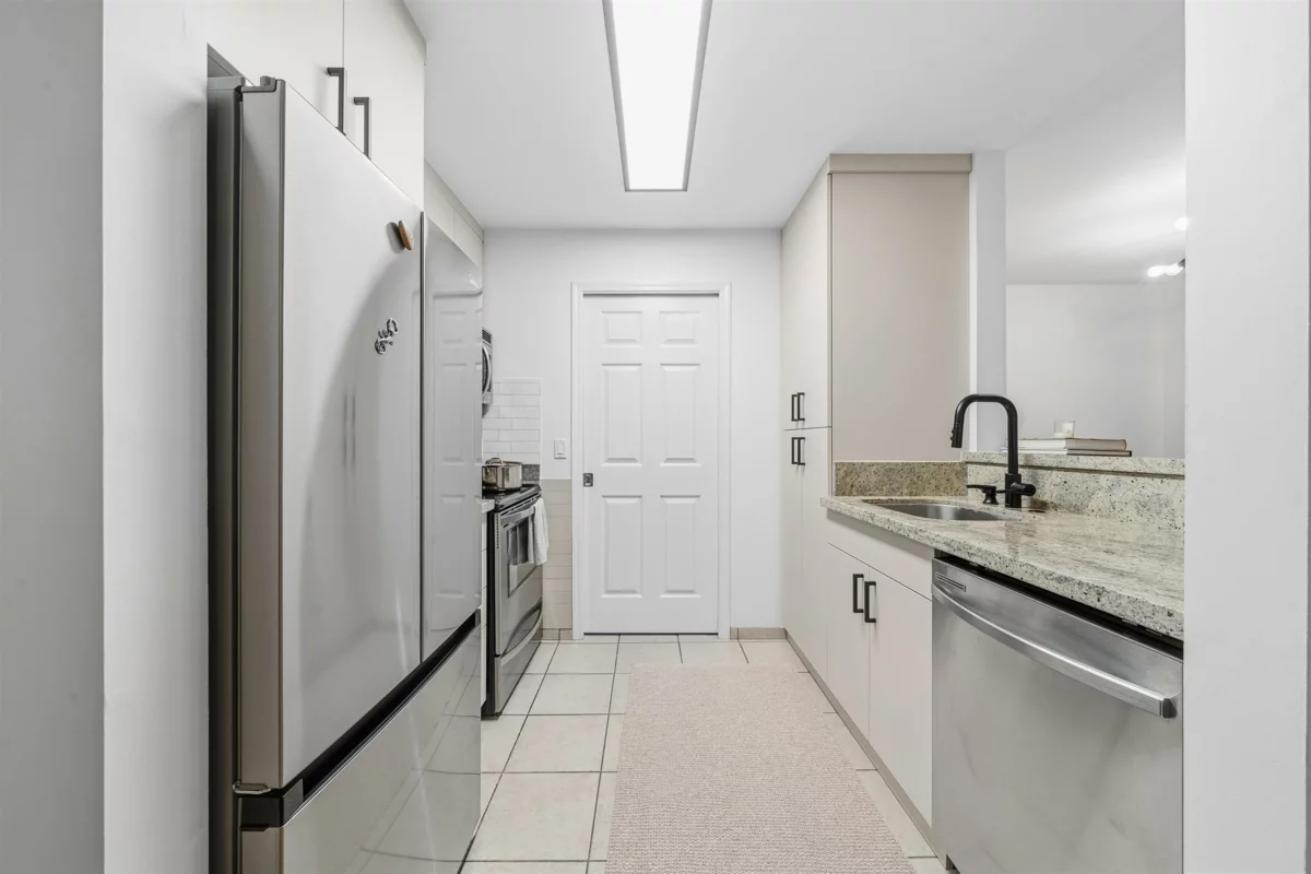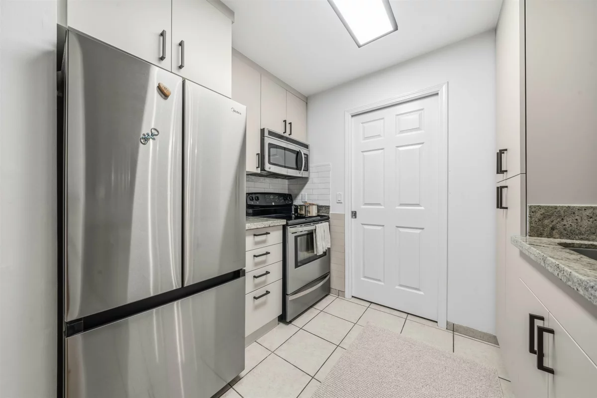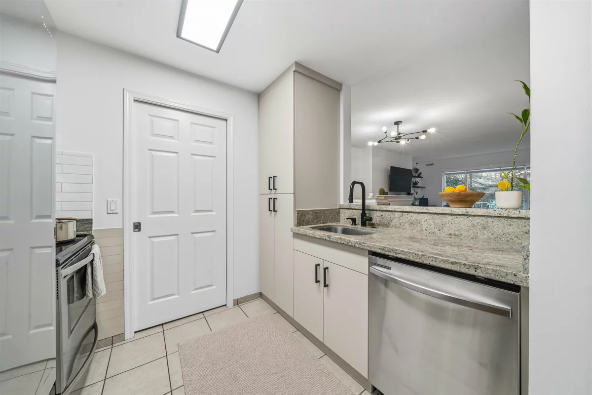 Welcome to The Legends, this bright and thoughtfully laid-out 1-bedroom home offering comfort, style, and outstanding location. The modern kitchen features stone countertops, updated cabinetry, and stainless steel appliances, flowing seamlessly into a spacious living and dining area filled with natural light. A cozy gas fireplace creates the perfect setting for relaxing evenings or entertaining guests, while in-floor radiant heating adds quiet, efficient warmth throughout the home. The generous bedroom provides a peaceful retreat with excellent storage. Perfectly positioned steps from Deer Lake Park yet just minutes to Metrotown, this well-maintained building offers a rare blend of nature, convenience, and lifestyle. An ideal opportunity for a first-time buyer or a smart investor.