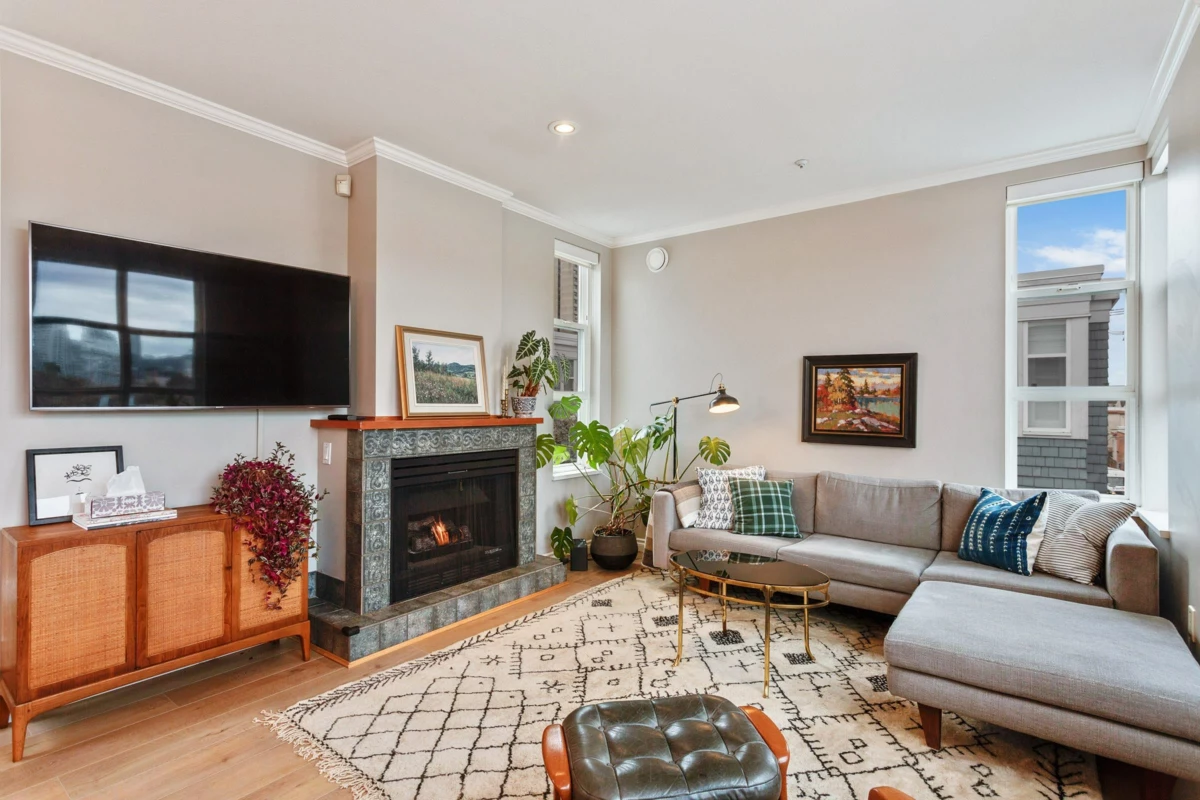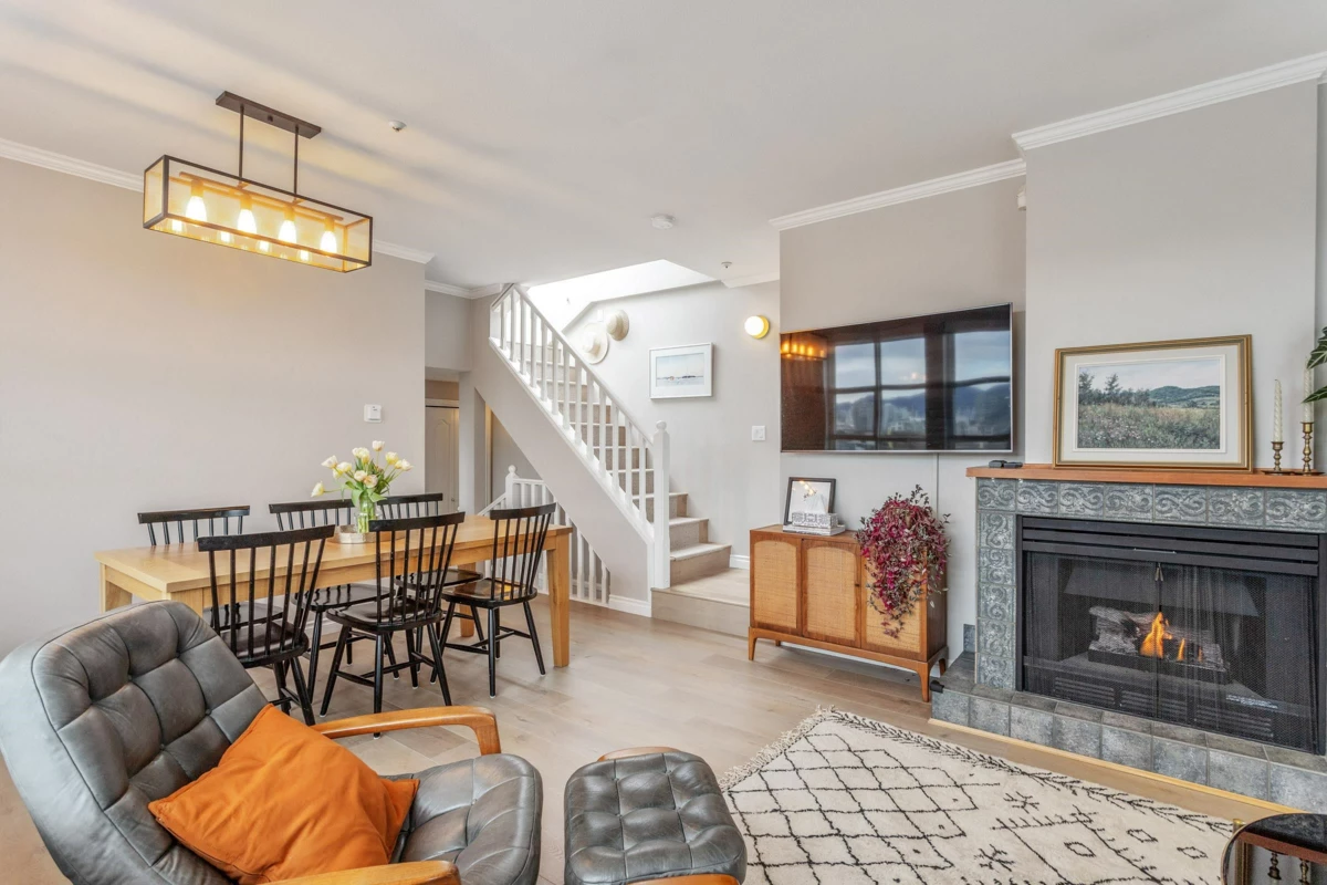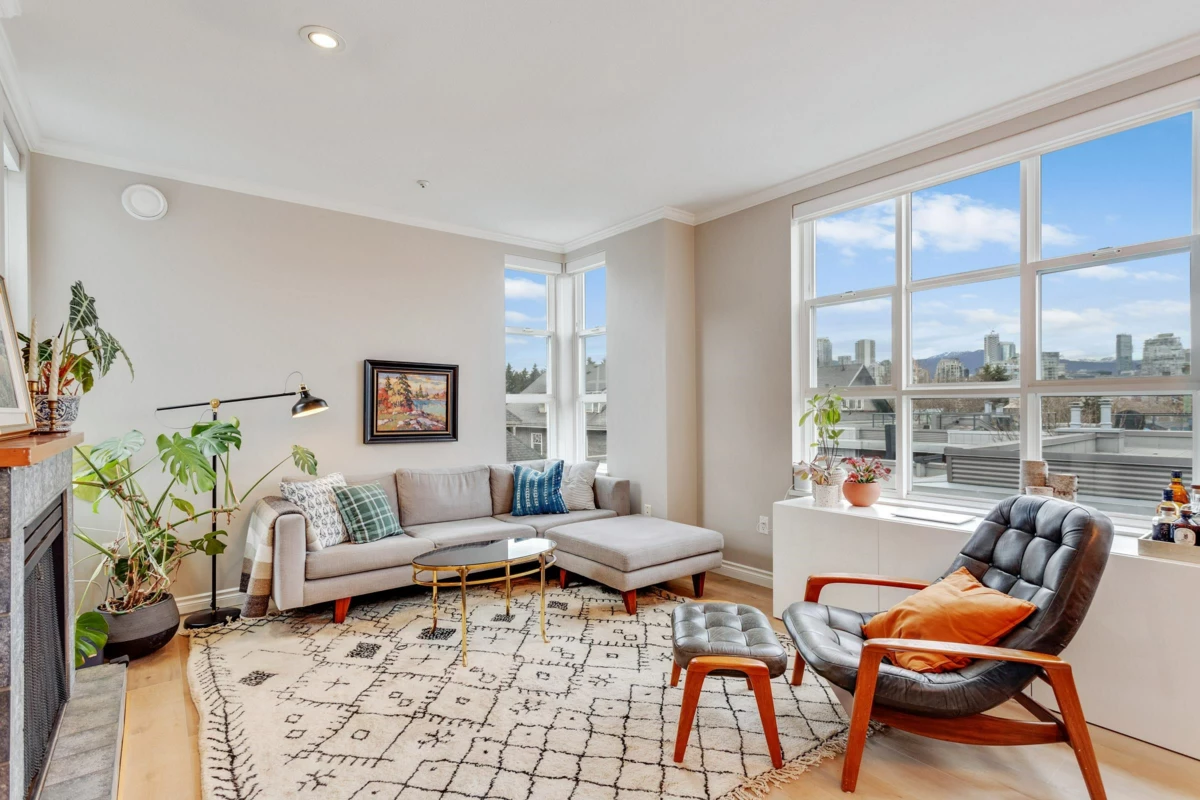 GORGEOUS 2 BD/ 2 BTH TOP-CORNER TOWNHOME WITH S, W & N EXPOSURE PROVIDING STUNNING MOUNTAIN & CITY VIEWS! Upstairs offers an updated kitchen with quartz counters, overheight ceilings & big picture window as well as a FULL pantry, spacious & bright dining / living rm with cosy gas fireplace & access to a private ROOFTOP DECK. Great separation between bdrms on main level. Primary bdrm has lovely natural light, ample closet space & ensuite while 2nd bdrm has 2 closets, 1 being HUGE that doubles as in suite storage. All of this in THE IVYS, a well maintained, sought after gated townhouse complex walking distance to the Canada Line, False Creek, Cambie corridor amenities & new Broadway train. 1 parking, 1 locker & bike storage. 1st showing Thurs. Feb 22nd 4-6pm Open Houses Sat/Sun from 1-2pm