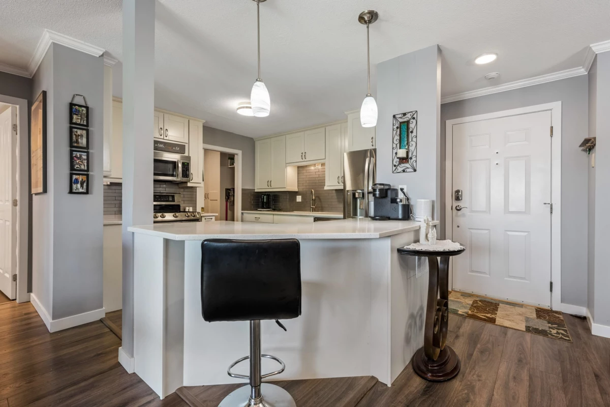Average size of families in the area adjacent to home for sale 210 7685 Amber Drive is 2.6. This is Low number in comparison to the whole region. Percent of families with children near by the Real Estate Listing - MLS® R2898159 is 42.2% and it is Low. % of Married or living common law is around 55.8% and it is Below Average.