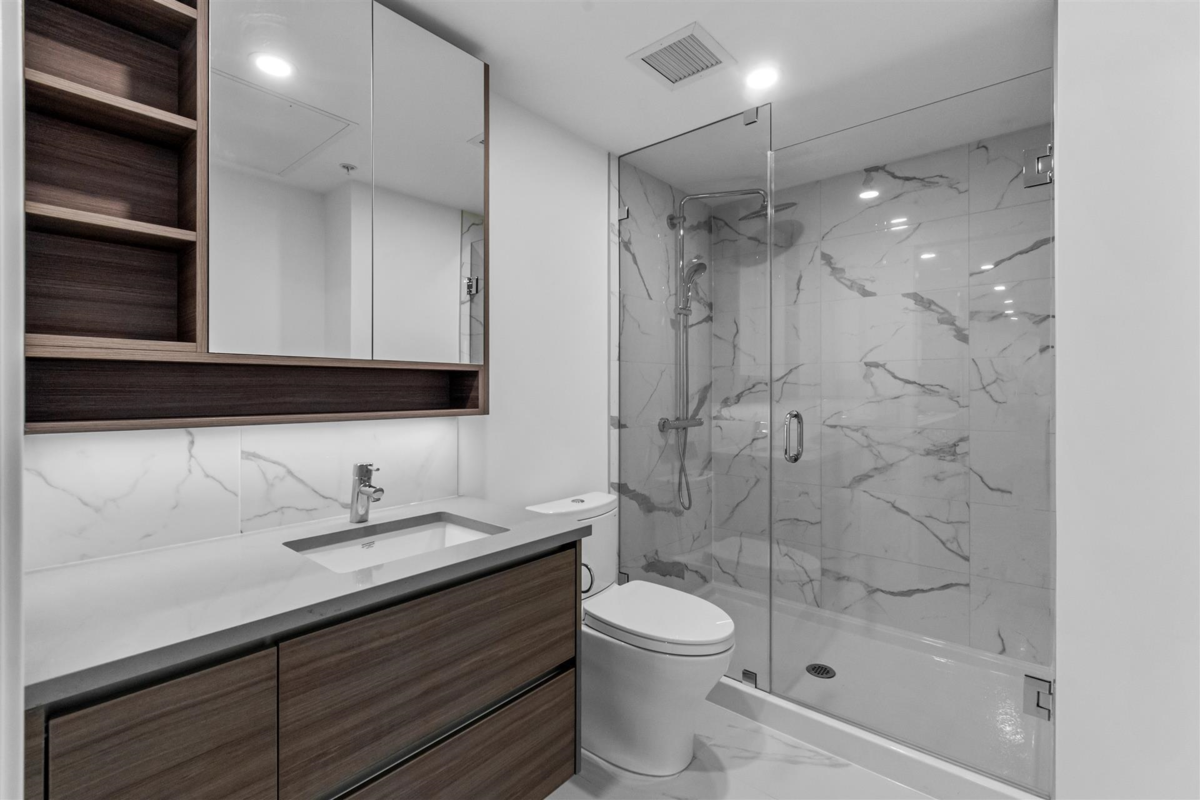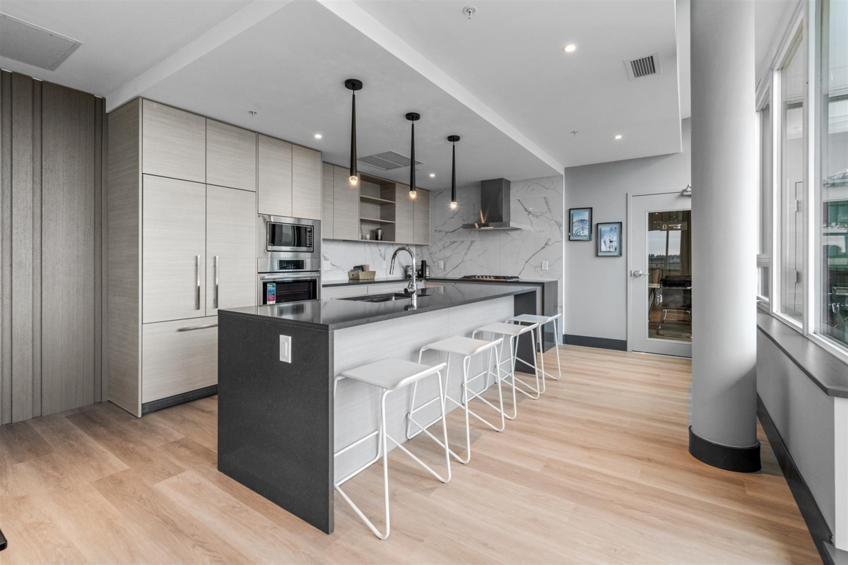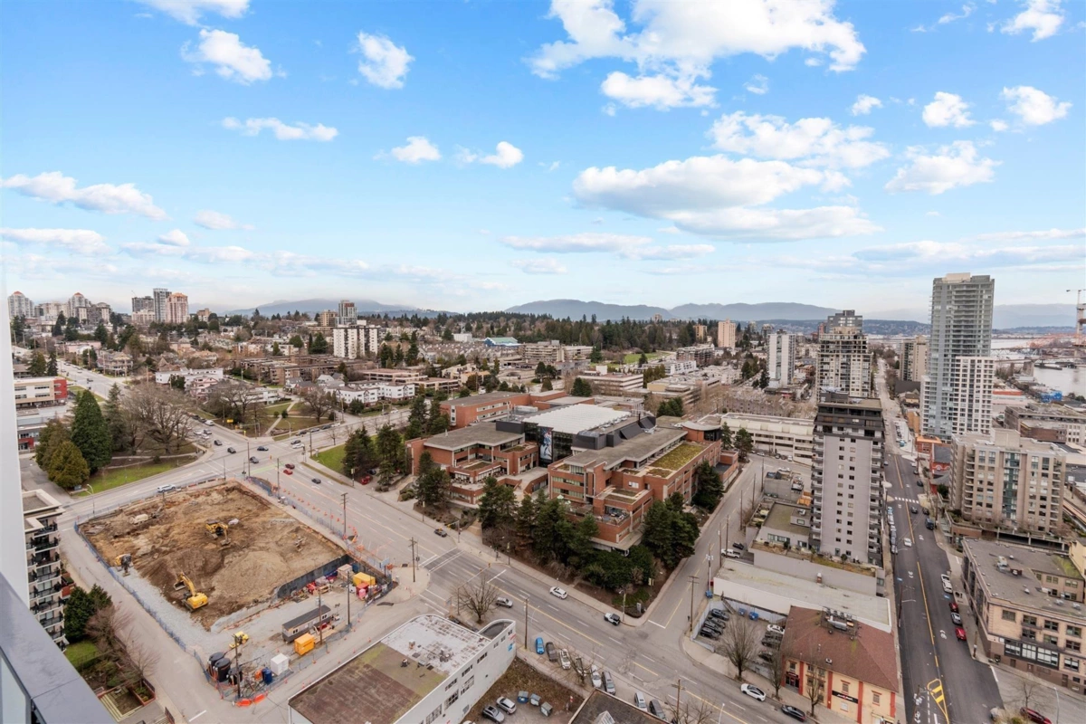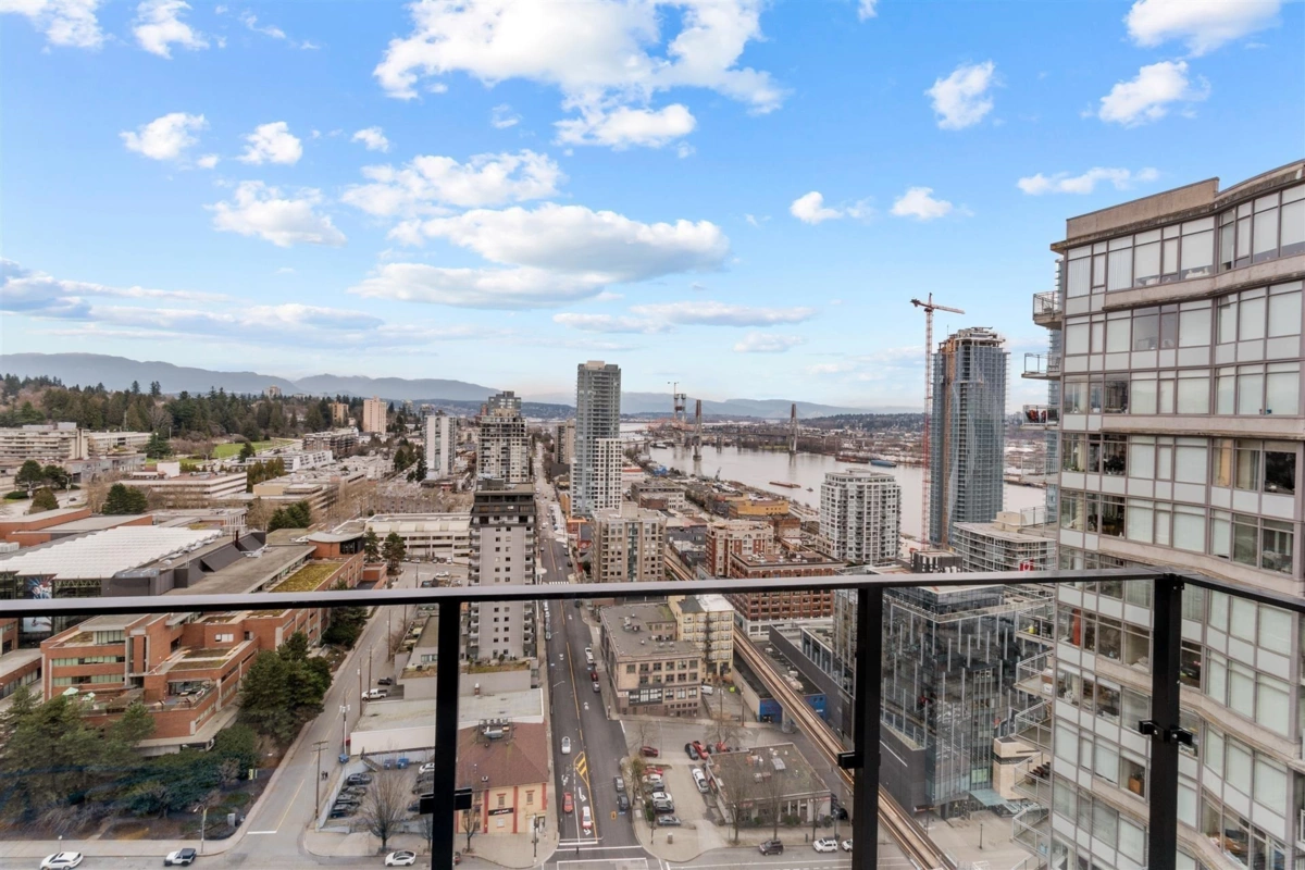 Welcome to OVATION! This HIGH FLOOR 1 Bed and 1 Bath offers CITY & MOUNTAIN VIEWS in NEW WEST. Steps from the QUAY WATERFRONT and NEW WESTMINSTER SKYTRAIN STATION, this home is great for first time home buyers and INVESTORS alike. Includes AC, LAMINATE, TALL WINDOWS, IN-SUITE LAUNDRY, QUARTZ COUNTERTOPS, BOSCH DISHWASHER and CONVECTION WALL OVEN. The building includes a CONCIERGE, a ROOFTOP DECK and FIRE PIT, LOUNGE, and EXERCISE CENTRE. Live the peak New Westminster lifestyle while benefiting from a CENTRAL location. Come by to view!