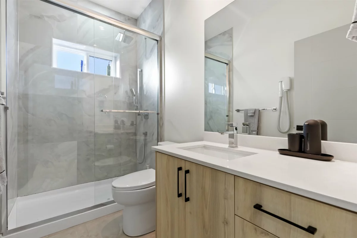 Experience refined living in this exquisite 9-bedroom, 7-bath masterpiece spanning over 4,400 sq.ft. of luxurious space. Thoughtfully designed with an open-concept layout, this home features premium finishes including central A/C, radiant heating, HRV, security system, generator, and high-end stainless steel appliances. The main level offers elegant living and dining areas, a gourmet kitchen with a spice kitchen, and a guest bedroom with a full bath. Upstairs showcases four spacious bedrooms with three beautifully appointed baths. The lower level includes a 3-bedroom legal suite and an additional bedroom with a full bath—perfect for extended family or added income. Complete with multiple patios, a double garage, and an ideal location near top schools, shopping, and transit. OH 15/16 2-4pm