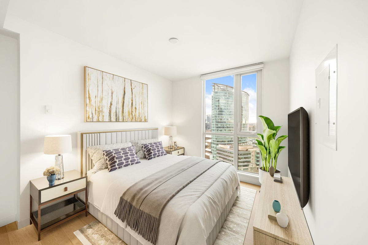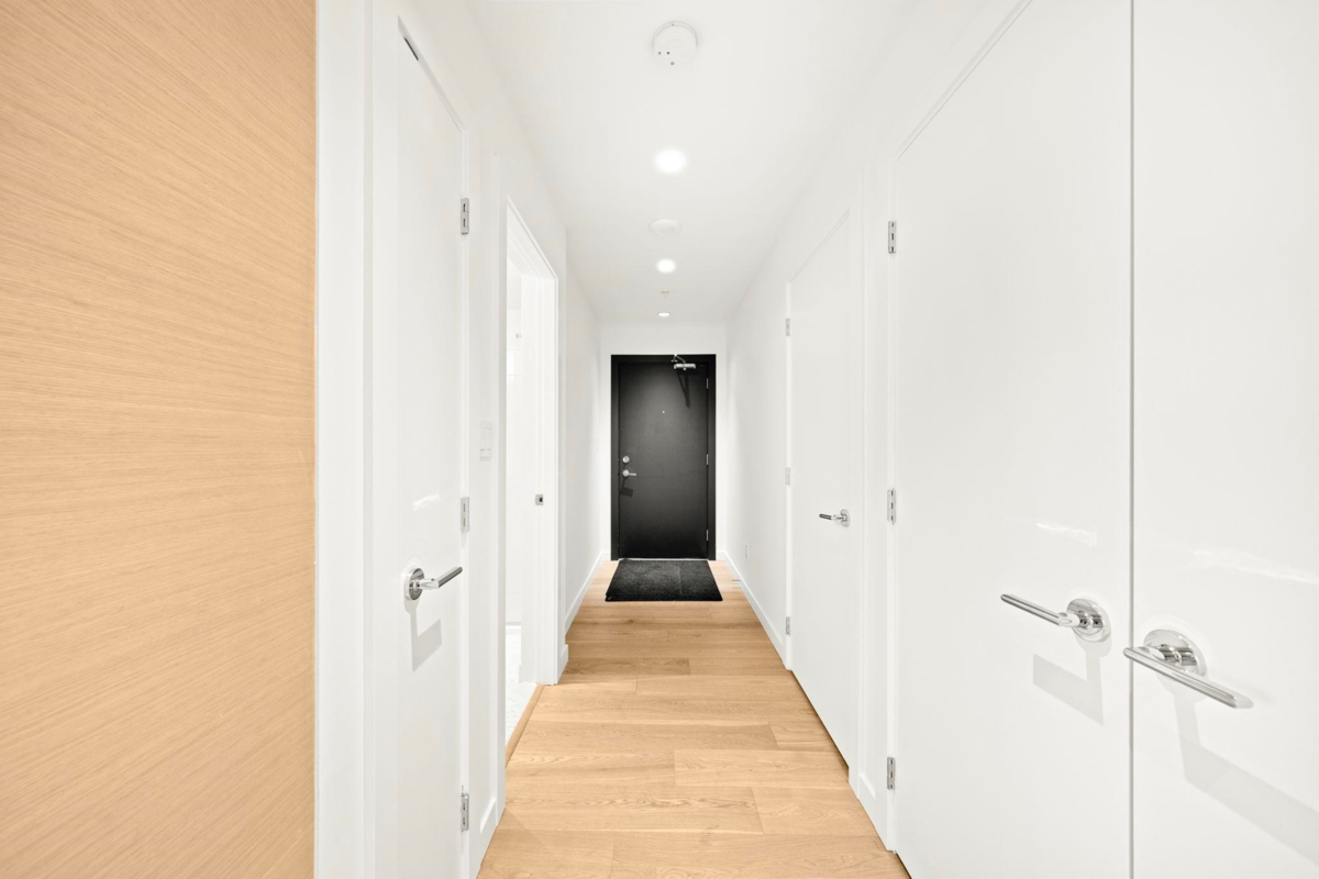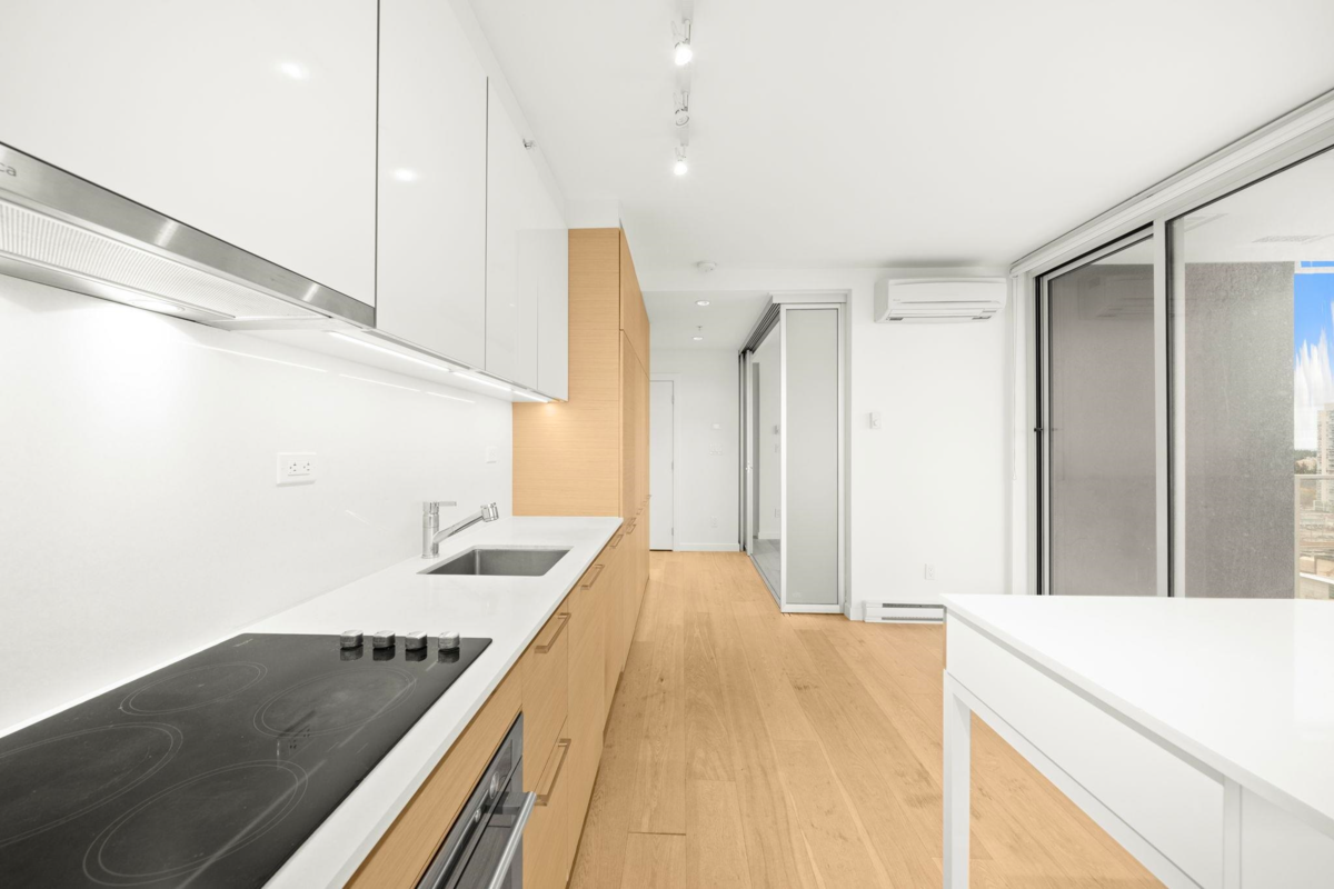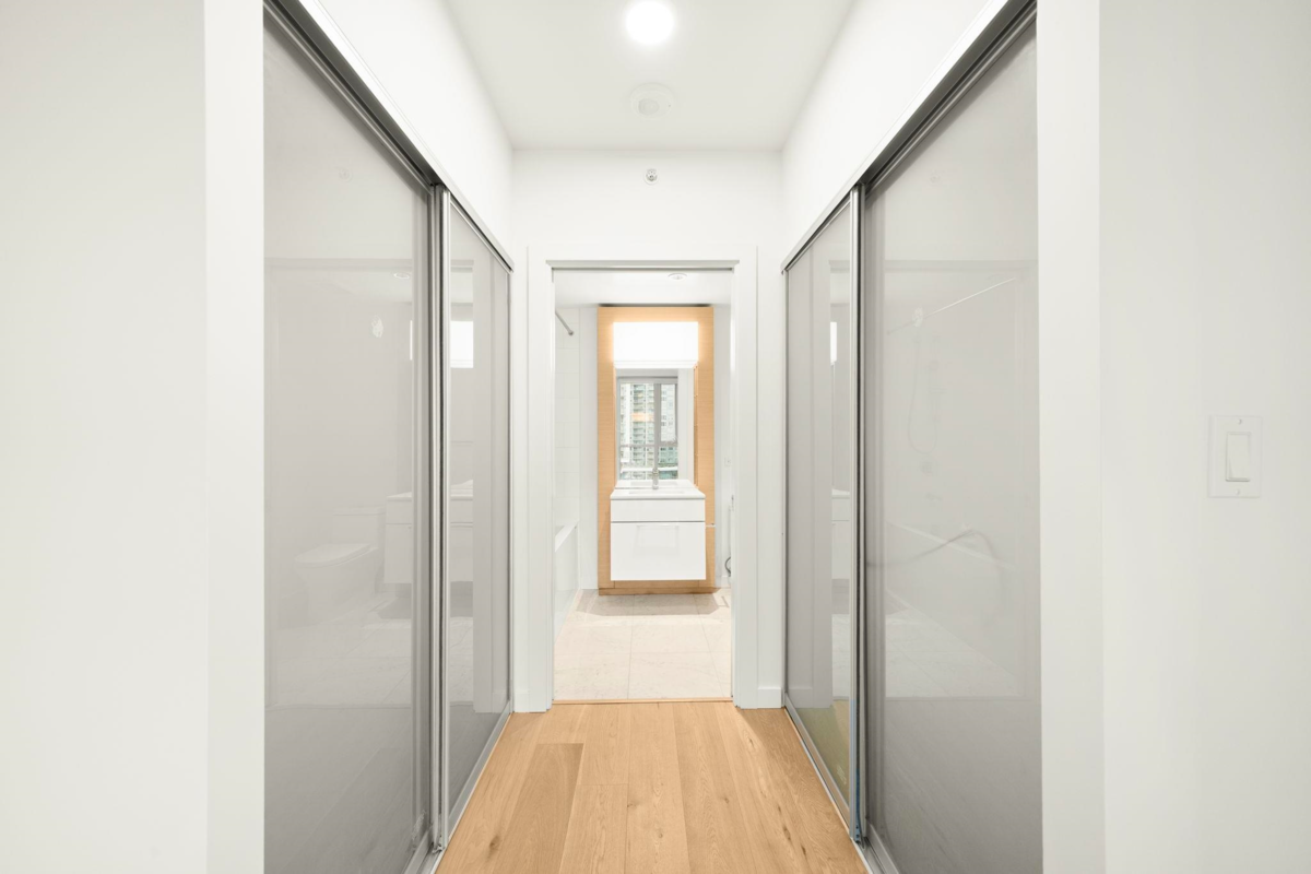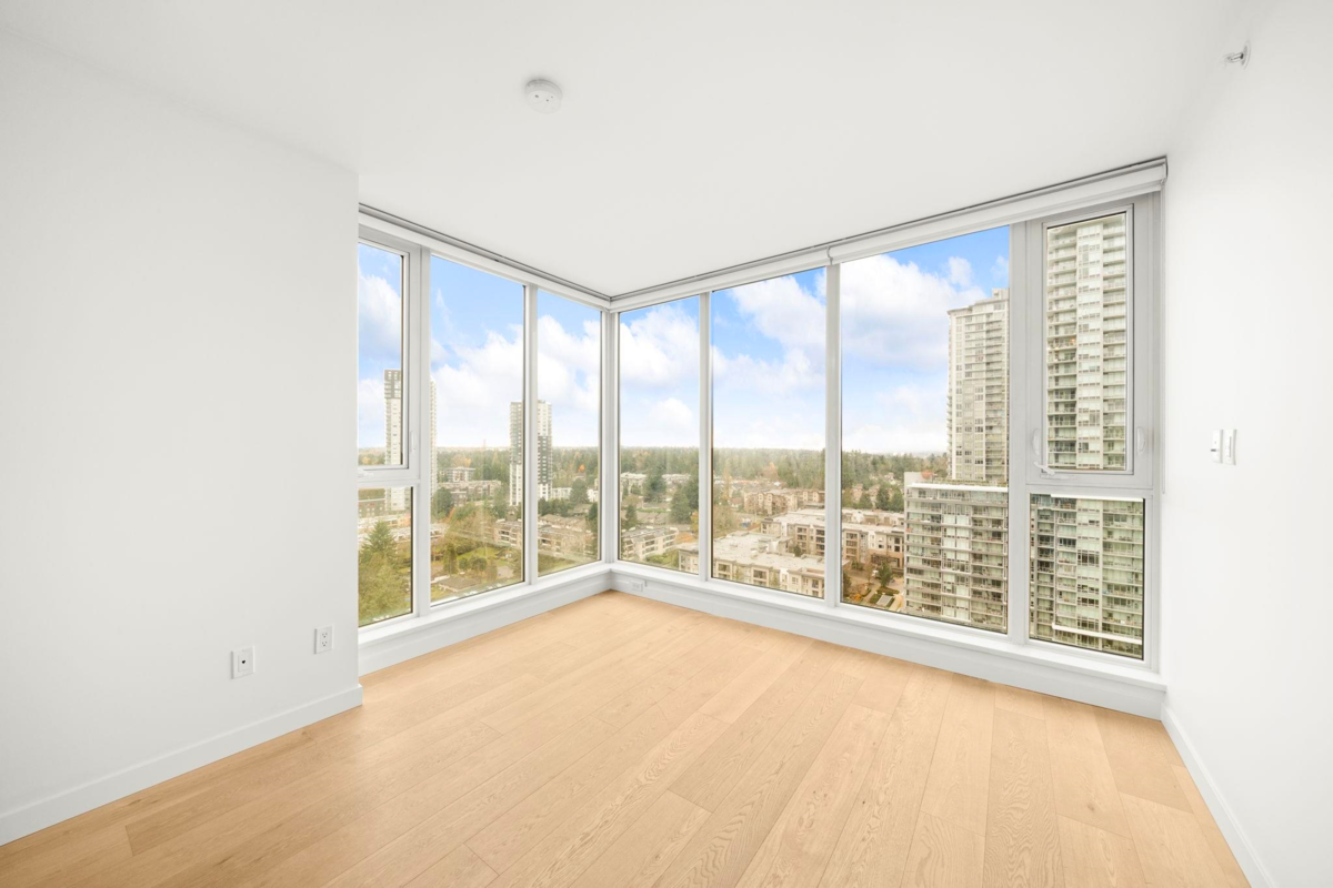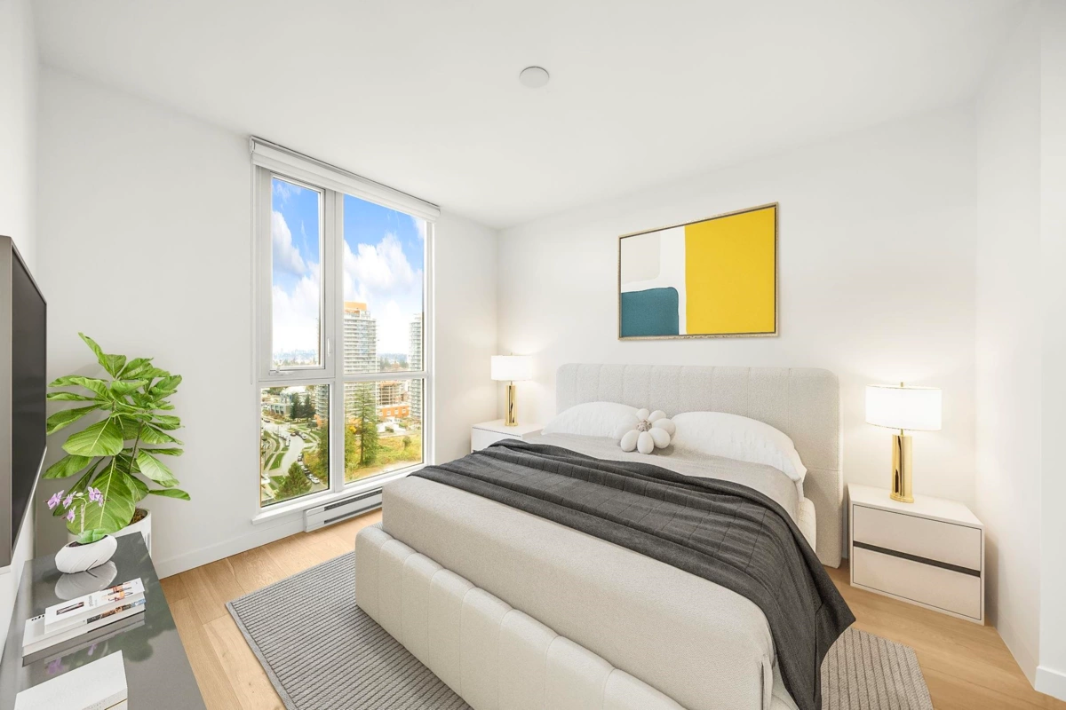 Welcome to Prime on the Plaza — a bright, quiet SW corner home offering one of the most spacious and efficient 2 bed/2 bath layouts, with bedrooms thoughtfully placed on opposite sides for maximum privacy. Enjoy A/C (always a bonus), 9' ceilings, hardwood floors, custom roller blinds, and excellent in-suite storage. The kitchen features soft-close oak cabinetry paired with a modern European appliance package. Both bathrooms feel spa-inspired, one with a frameless glass shower, another is a deep soaker tub, marble tile, and contemporary fixtures. Amenities include a full gym, yoga studio, sauna, steam room, study rooms + more. Steps to Surrey Central SkyTrain, Library, and Central City Mall. 2-5-10 Warranty is still in play. Open House: Jan 24, 2-4 PM / Sun Jan 24, 2-4pm