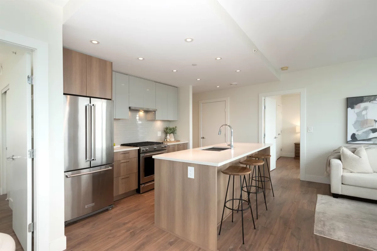 Move right into this exquisite home with captivating views of the water, cities, bridges, & mountains. Perched above its neighbours on the southwest corner, this unit has an open & refined floor plan with a harmonious flow. The finishes are stately, featuring stainless steel appliances, elegant quartz countertops, & european style cabinetry with soft-close technology. The bedrooms are discreet, being on opposite ends. The outdoor balcony is a grand-sized 129 SQ.FT & has a covered section for all-year usage. Accessible parking stall, secured storage locker, 12,000+ SQ FT of outdoor amenities, plus exclusive access to CLUB CENTRAL with 10,000+ SQ FT of indoor amenities. Elevate your lifestyle here at Brewery Creek, where everything you need is right on your doorstep. Call now!