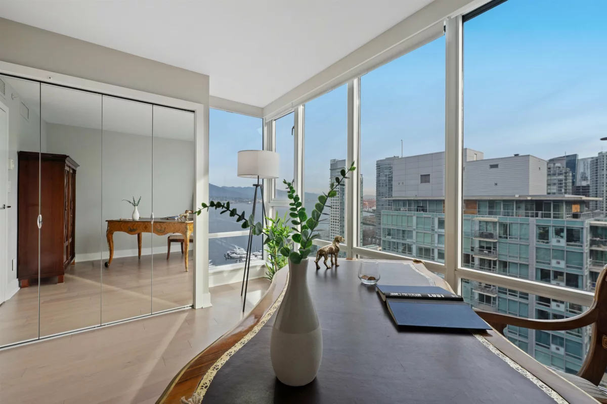 Experience refined waterfront living in one of Coal Harbour’s most sought after buildings.This rarely available, RENOVATED, upper level home at Cascina offers protected, breathtaking ocean, marina and Stanley Park views that impress from the moment you enter. The spacious layout with tons of natural light features generous principal rooms, breakfast solarium, gourmet chef’s kitchen with stone countertops + backsplash, Miele and Sub Zero appliances + pantry, new engineered oak flooring, and a cozy gas fireplace. Large primary bedroom has, views, WIC and ensuite and large 2nd bedroom. Cascina is renowned for its exceptional management and amenities including 24 hour concierge, indoor pool, hot tub, sauna, fitness centre, three elevators, 2 parking + locker. Open House Jan 31 + Feb 1 2-4pm.
