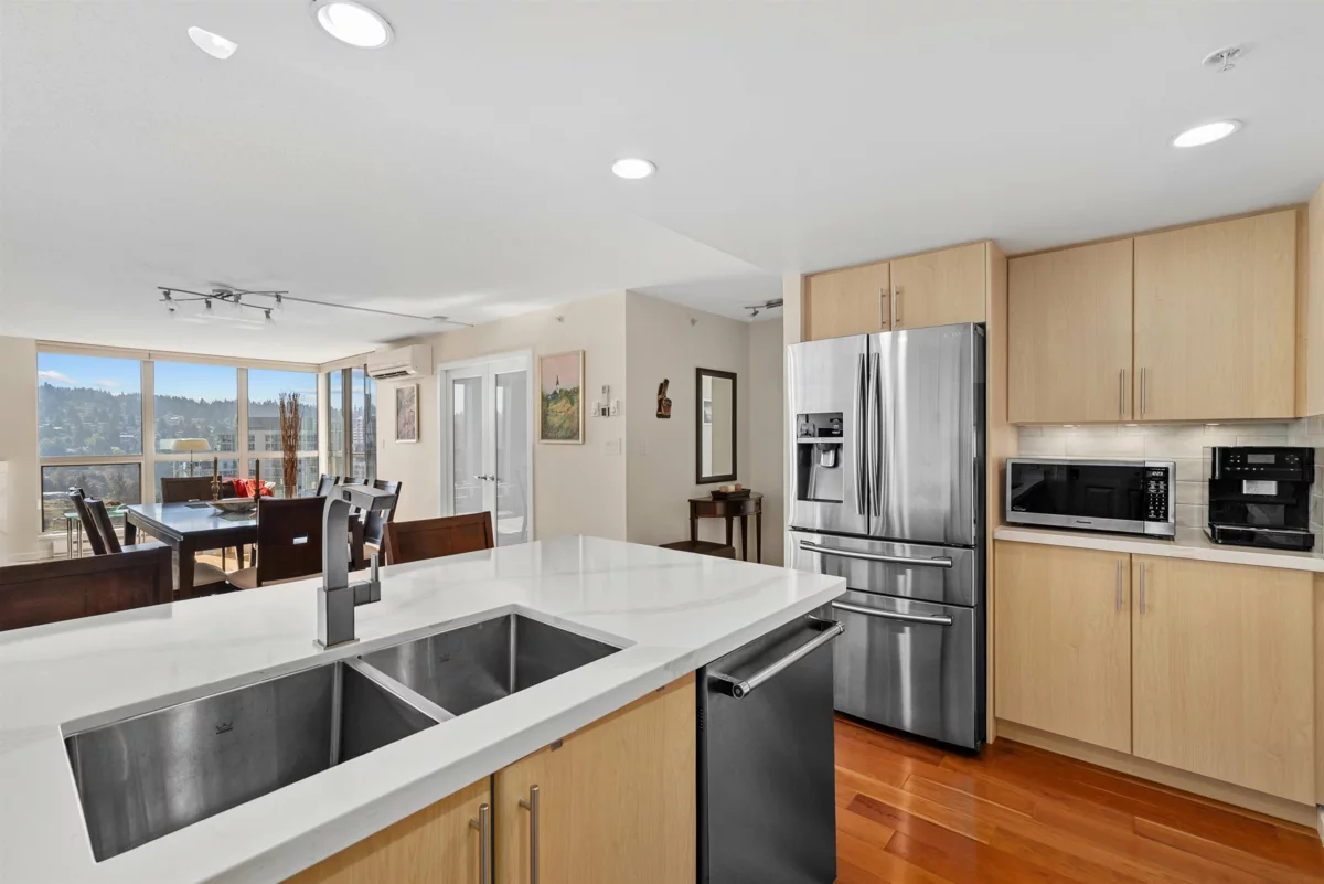 Wake up to sweeping Burrard Inlet views, pick up your morning coffee in vibrant Newport Village just downstairs, and host effortlessly in this 1,800+ sqft residence designed for entertaining. Nearly $100K in thoughtful upgrades include quartz countertops, custom millwork, designer lighting, and high-end appliances throughout. Stay comfortable year-round with air conditioning, generous bedrooms, spa-like bathrooms, and a flexible den ideal for a home office or third bedroom. Two back-to-back parking stalls, a private storage room, and resort-style amenities complete the package—all in a prime Port Moody location just steps to shops, restaurants, Rocky Point Park, and the SkyTrain.