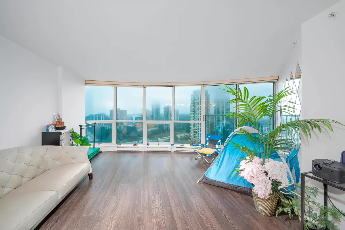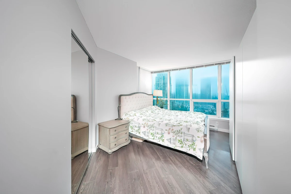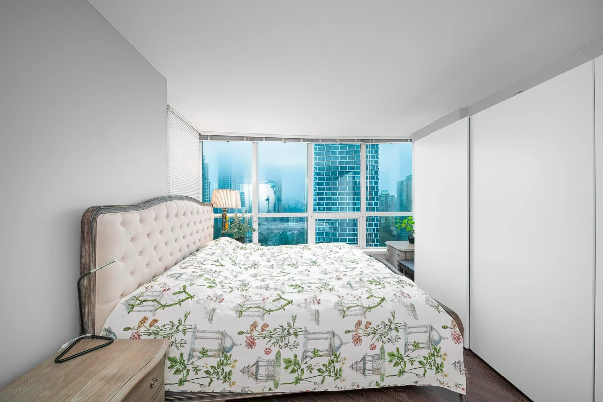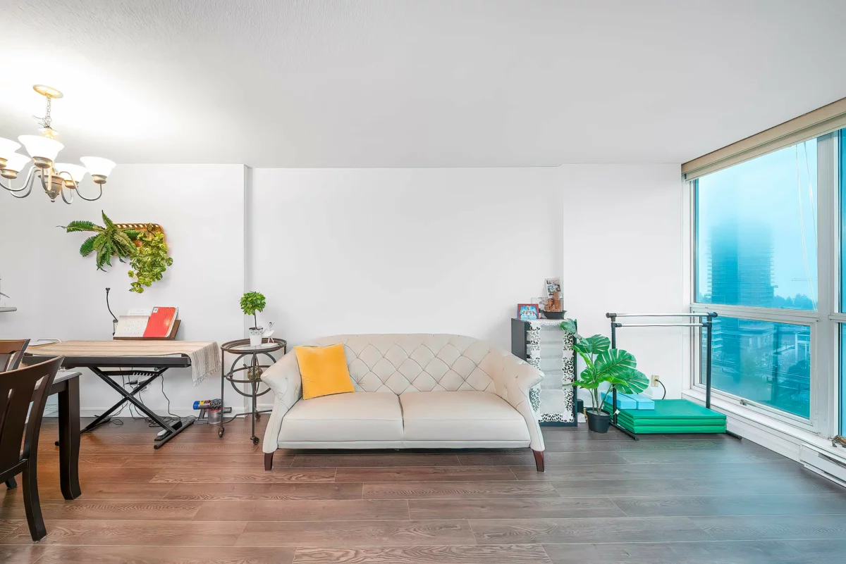 Welcome to this well-located 1-bedroom, 1-bathroom residence situated right above Crystal Mall at 6088 Willingdon Avenue in the heart of Metrotown. This well-managed building offers excellent amenities including a fitness centre, swimming pool, meeting room, and rooftop garden. The home features a spacious living area with a full wall of floor-to-ceiling windows, providing abundant natural light and open city views. With 769 sq. ft. of interior space which is larger than many two-bedroom apartments. The bright and generous bedroom easily accommodates a California king-size bed, offering a enjoyable and functional living experience. Ideal for both homeowners and investors. Open House on Jan 24 & 25, 2-4pm.