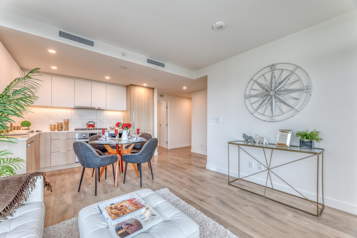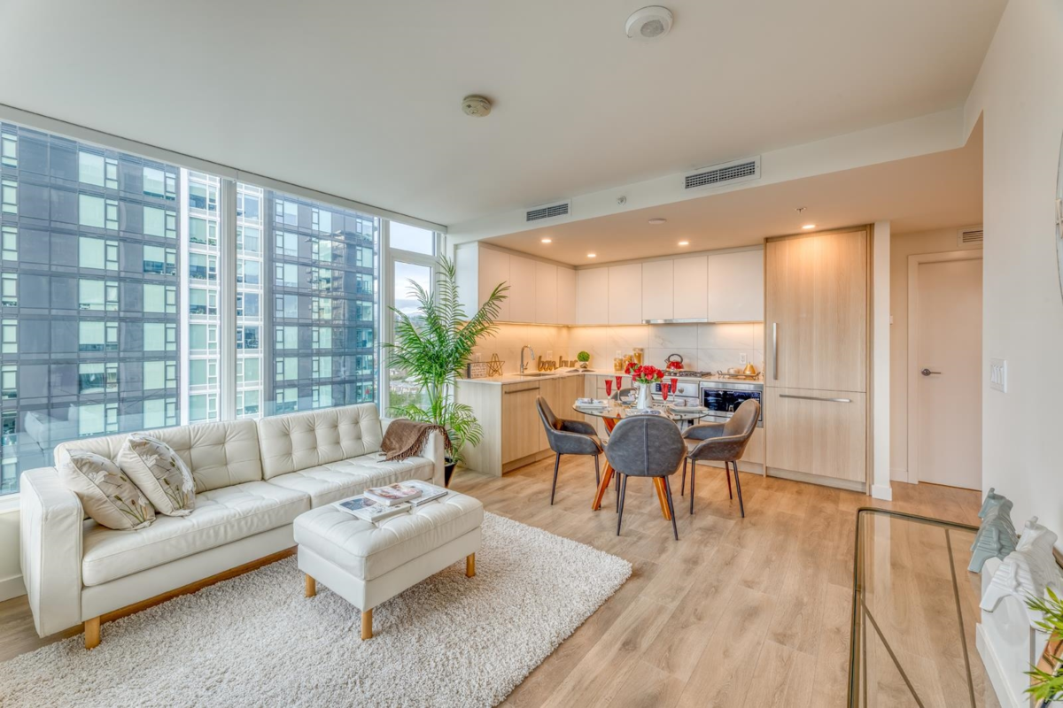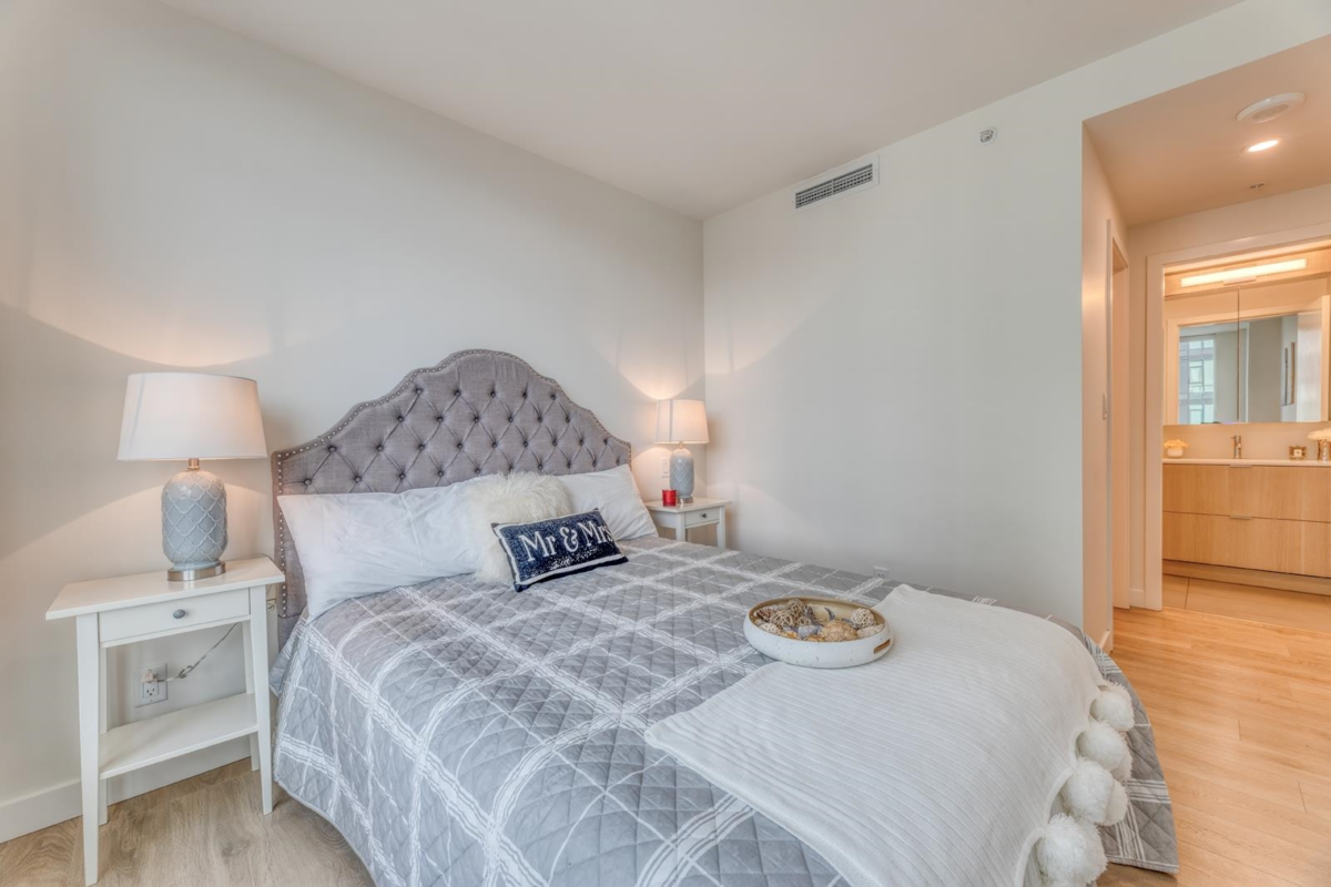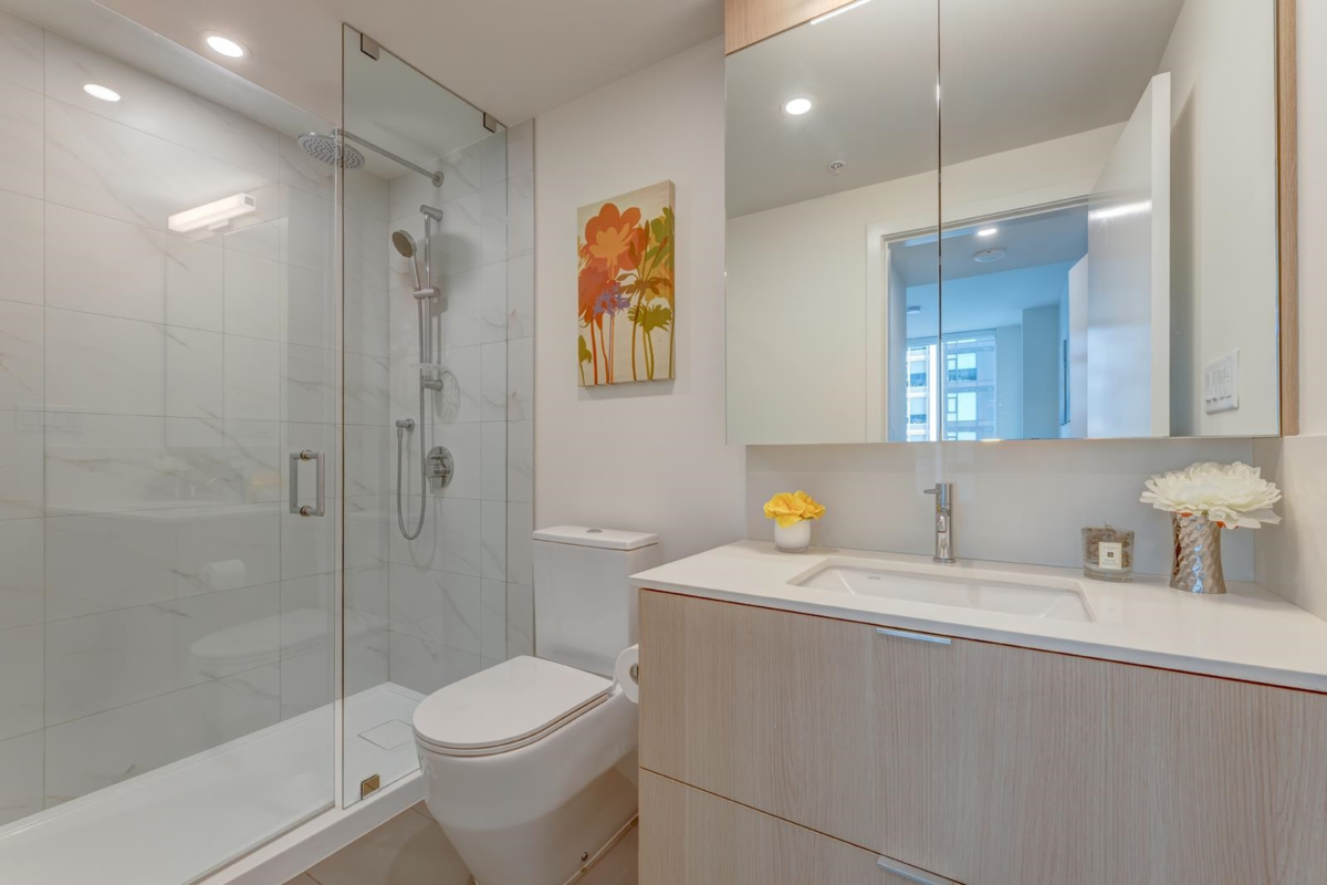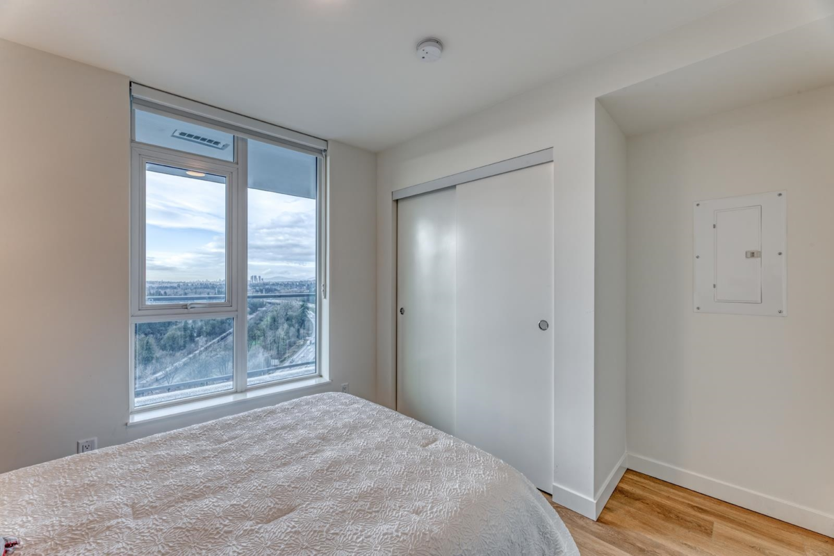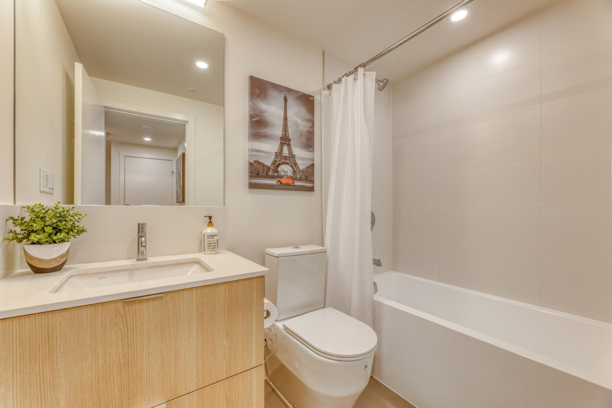 Beautiful 2 bed 2 bath 824SF NW CORNER home at SOCO by Anthem! Spacious L-Shaped Kitchen features integrated 30" Bosch and Fisher Paykel Appliances, Quartz Countertops. Bright living room with SWEEPING city and mountain view. Primary bedroom with walk-in closet and Ensuite. Good-sized 2nd bedroom and guest bathroom. Laminate flooring throughout, Air-conditioned. Spacious West facing balcony to enjoy beautiful Sunset. Comes with 1 EV ready parking and 1 locker. 43,000SF indoor and outdoor amenities includes Gym, Lounge, playground, Sports Court, BBQ area etc. Walking distance to Lougheed town centre, skytrain, H mart, restaurants and coffee shops and more. Like New and ready to move in! OPEN HOUSE SUNDAY FEB 1 2-4PM