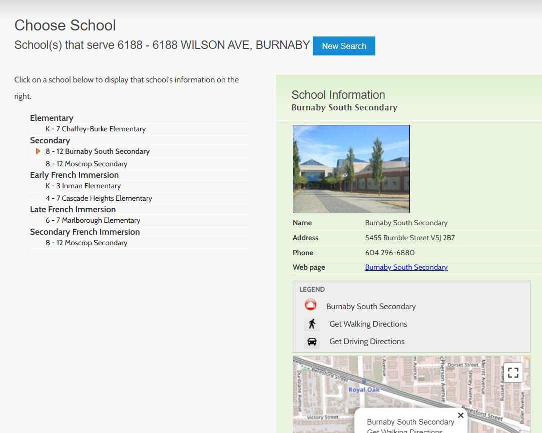 Information includes BC Government Open License data; school details change often and are offered solely as general guidance.