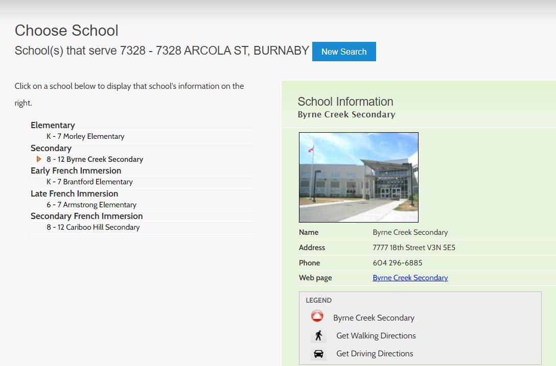Information includes BC Government Open License data; school details change often and are offered solely as general guidance.