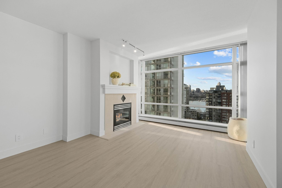 Welcome to Unit 2106 at 1199 Marinaside Crescent in the well-managed Aquarius complex. This spacious one-bedroom plus den corner suite features the highly desirable 06 floor plan, known as one of the largest and best one-bedroom layouts on Marinaside. The home offers a good sized bedroom, a proper dining area, a large living room, and an oversized den with corner windows - ideal for a home office. A good sized balcony provides beautiful water views and added outdoor living space. Recent upgrades include new luxury vinyl flooring, fresh paint, a new bathroom sink and faucet, new toilet, new microwave, and more. An extra large storage room completes this exceptional offering.