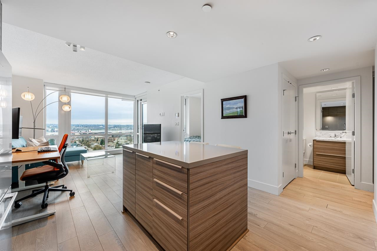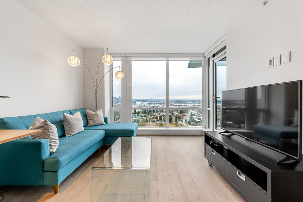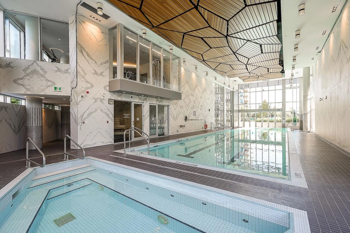JUST REDUCED! Welcome to Beacon! Soaring on the 21st floor enjoy SOUTH-facing city and water views. This immaculate conditioned 1-BEDROOM + den/flex offers 602 sq.ft. of MODERN living with QUARTZ countertops, high-end Bosch and Fisher & Paykel s.s appliances and GAS cooktop. The endlessly BRIGHT living area opens to a PRIVATE balcony with a gas bib hookup. The versatile den can be used as an office or storage. Enjoy 3 elevators and TOP-TIER amenities, the 14,000sqft Denna Club offers a 25m indoor pool, 3,700sqft fitness room, sauna, steam room, yoga studio, and guest suite. Pet-friendly, with 1 parking spot and storage locker. Close to Lynn Creek, Seylynn Park, trails, and highways.