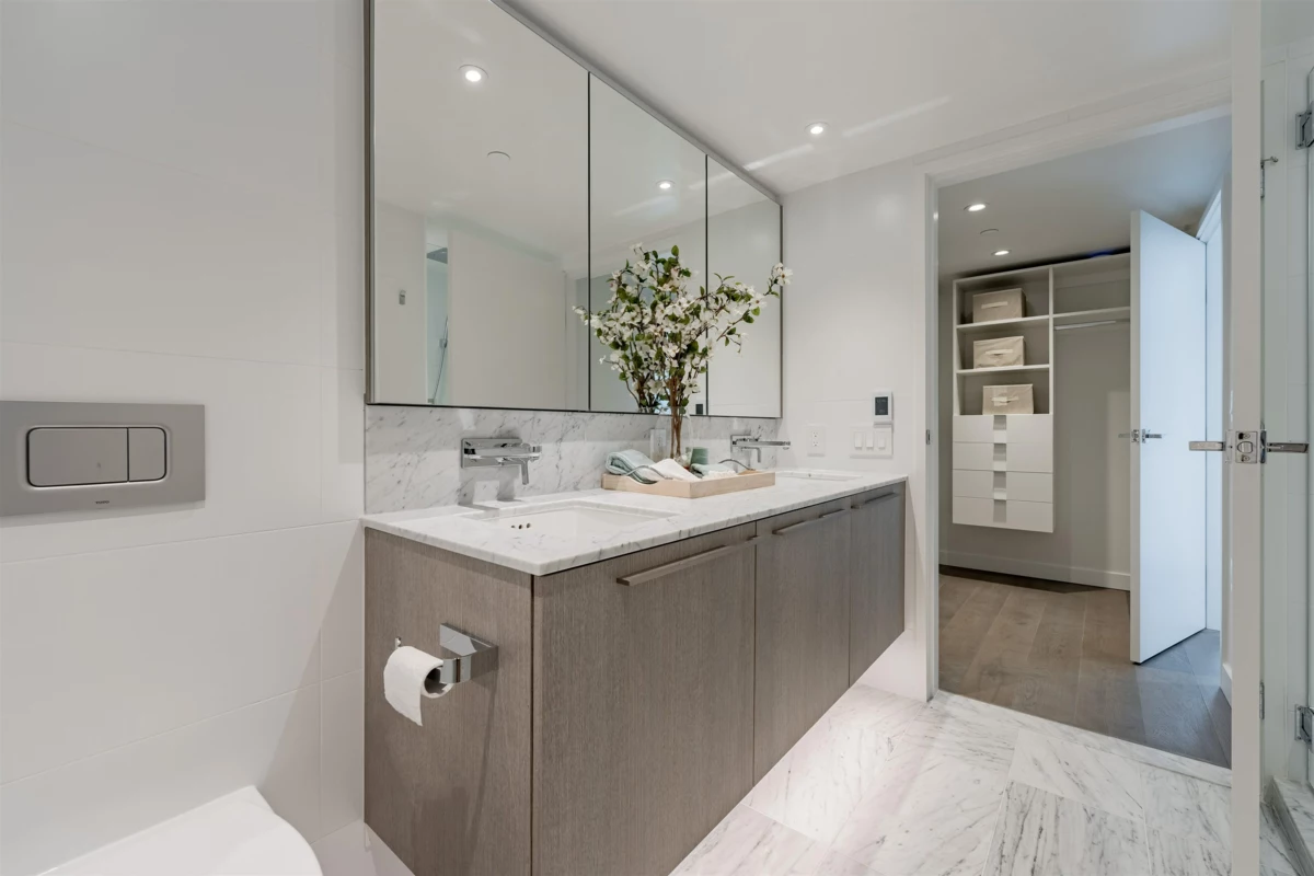 The most desirable floor plan with THREE bedrooms wrap around balcony (SW exposure) overlooking Emery Barnes Park, the City & some water views! This sky-home comes w/ smart technology such as Nuheat radiant floor heating & cooling, dimmable lights & smart learning thermostats. Stunning kitchen includes integrated Miele appliances, Italian cabinets & full slab marble backsplash. Flawless bathrooms boast marble floors w/ in-floor heating. Amenities incl 24 hr concierge & access to SKY LOUNGE equipped w/ Sky Fitness Centre, Yoga Room, lounge w/ full kitchen & entertainment area & outdoor roof top patio w/ loungers & BBQ terrace. Incl 2 parking stalls, storage locker & bike storage.