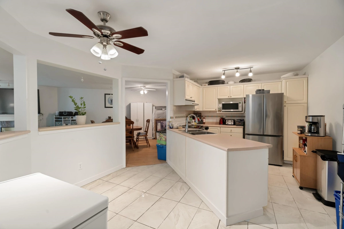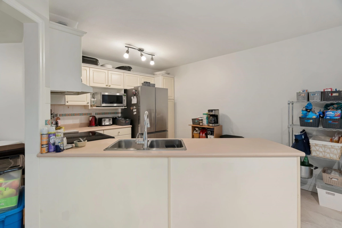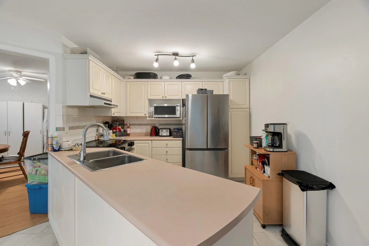Welcome to College Park , This Large Open concept 1,356 sqft condo features : Large bdrms , gas fire place , living rm , dining room , Open kitchen , brand new appliances , Newer hot water tank , Private setting over looking court yard . Newer paint and fresh tile in kitchen and foyer . Walking distance to Kwantlen College , all the shopping , bus station . Shows well !!