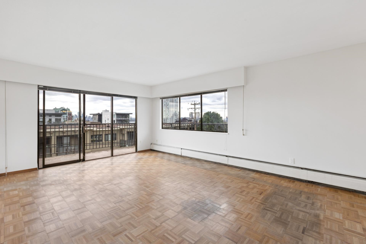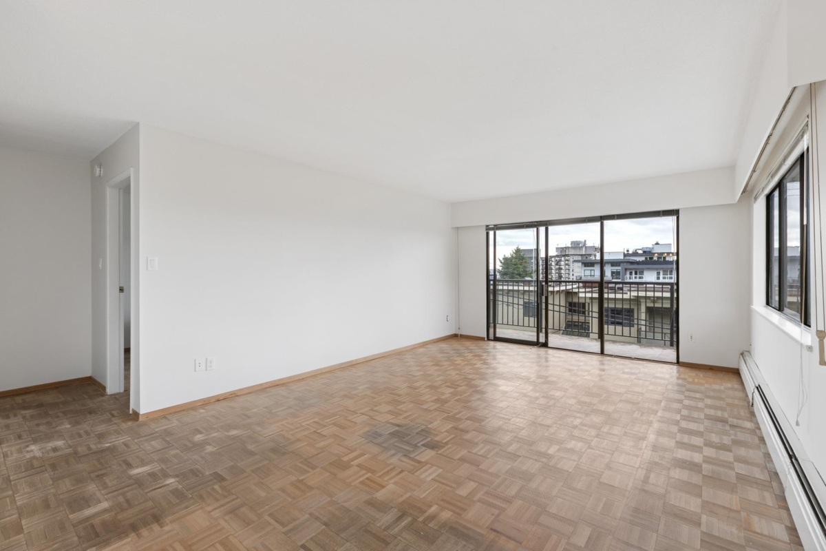 Bright 2-bedroom Winchester Estates Co-Op on the quiet southwest corner of the building, offering excellent value and light-filled living. The traditional, partially open layout features a generous living room with sliders to a wrap-around balcony and plenty of windows with partial city views. The dining area adjoins a galley kitchen with stainless steel appliances. The primary bedroom accommodates a king bed, while the second bedroom is versatile for guests or an office. Includes a 4-piece bath, original parquet floors, and fresh paint. Winchester Estates is an adult-oriented (18+) co-op with new roof (2025), and fees include heat, hot water, and basic cable. Steps to Lonsdale Quay, Shipyards, cafés, and SeaBus. Co-op requires 35% down and board approval.