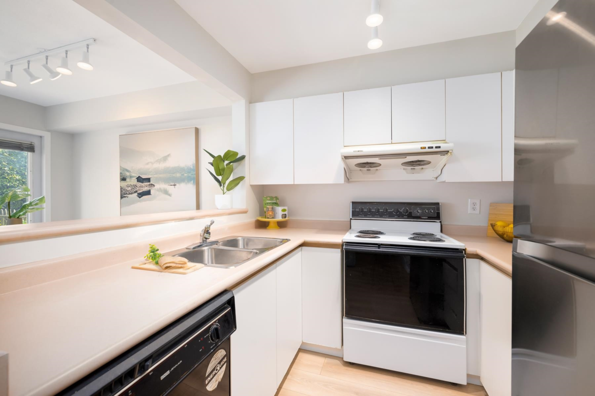 TOWNHOME READY FOR YOUR DREAM UPDATE! Quiet No. 4 Rd Location! Stylish 2-Level Townhome with 2 Bedrooms, 3 Bathrooms + Den (easily converted to a 3rd bedroom)—perfect for families or investors. Bright, square and functional layout flooded with natural light, highlighted by a kitchen skylight. Main floor features open-concept living and dining, while upstairs offers spacious bedrooms. Enjoy true townhome living with a low strata fee. Family-friendly setting just minutes to Sungiven Foods, Costco, restaurants, and transit. 2 Parkings side-by-side included!