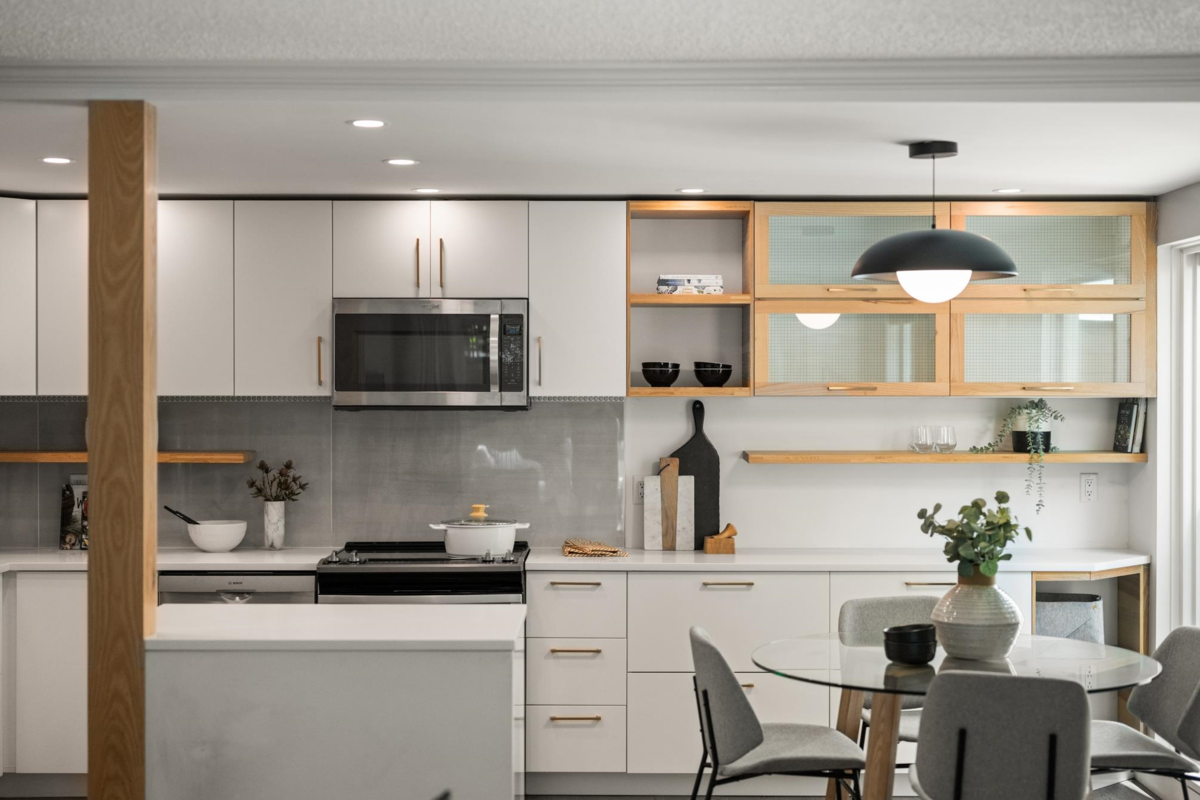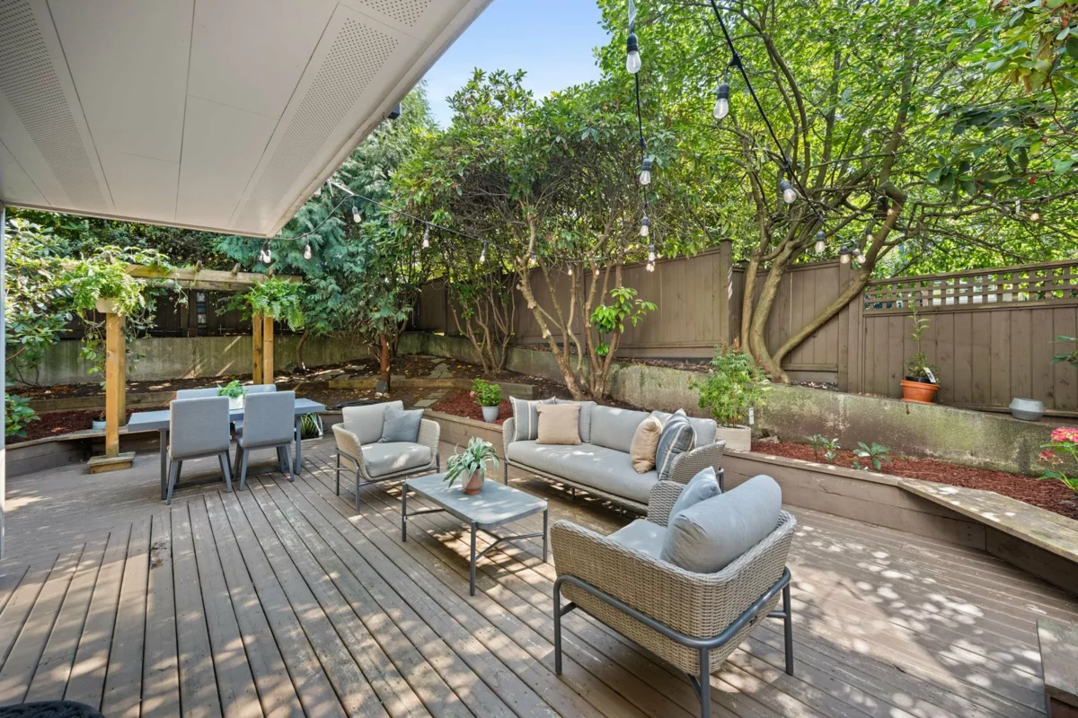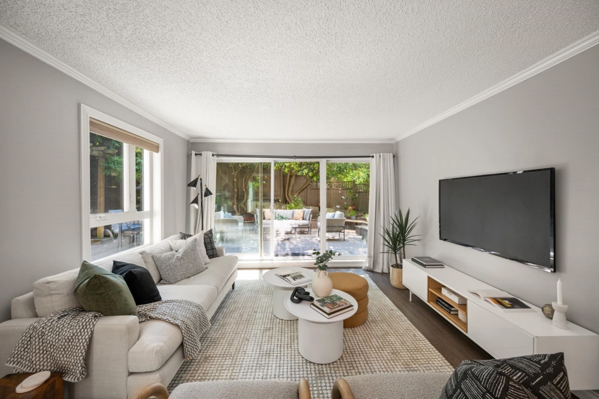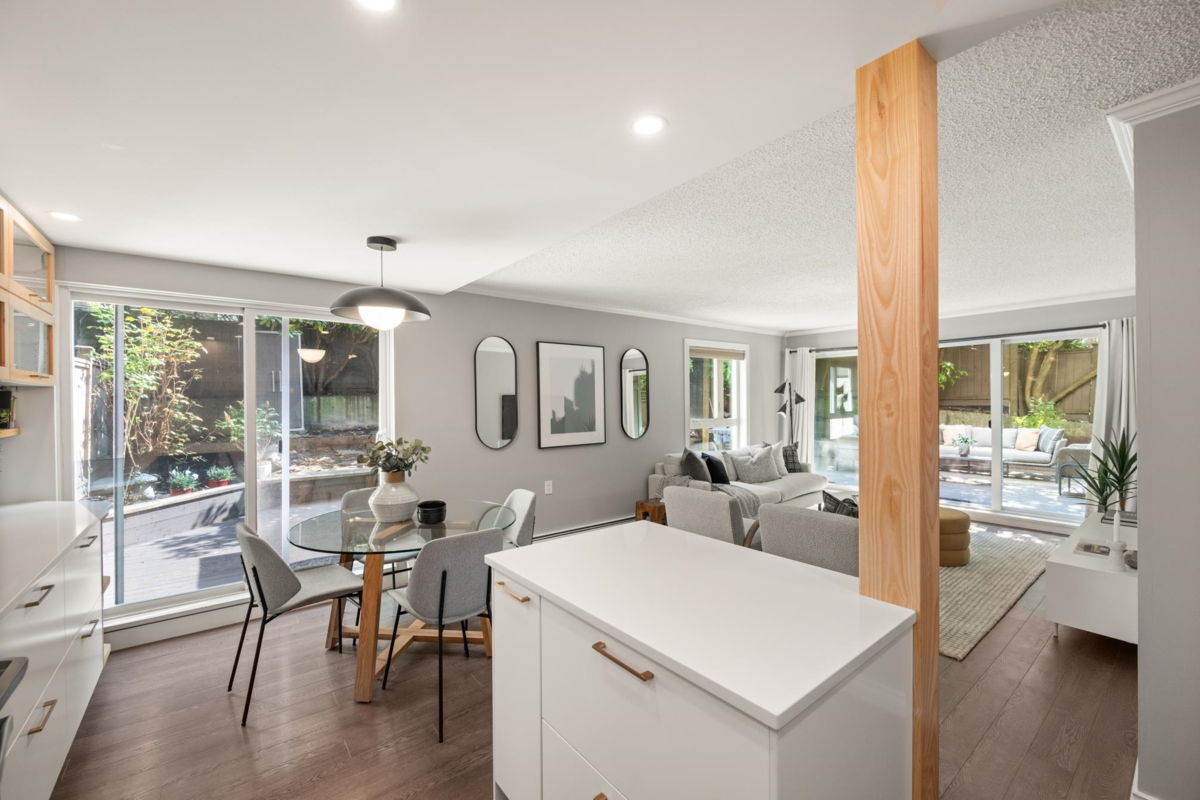 Discover an extraordinary CORNER suite where luxury & outdoor living converge. This impeccably renovated 2BD residence offers over 1,700sf of PRIVATE FULLY FENCED PATIO & GARDEN space, creating a secluded urban oasis that's unparalleled in the city! The home seamlessly blends modern sophistication w/mid century charm featuring wood beams & an open concept kitchen, high-end Champagne Brass Fixtures, custom ash cabinetry, & stunning Quartz countertops The landscaped garden, basking in southern exposure, invites you to unwind in your own tranquil retreat. This property doesn't just offer beauty—it ensures peace of mind. Practicality meets elegance w/ ample storage and 2 side-by-side parking spaces. DOGS WELCOME!