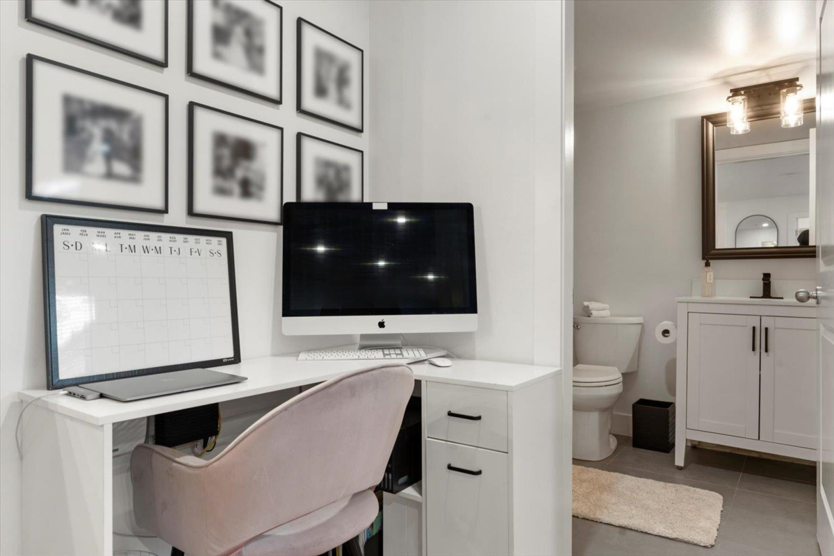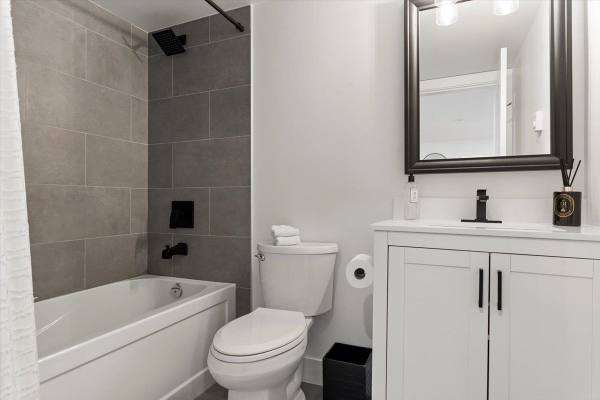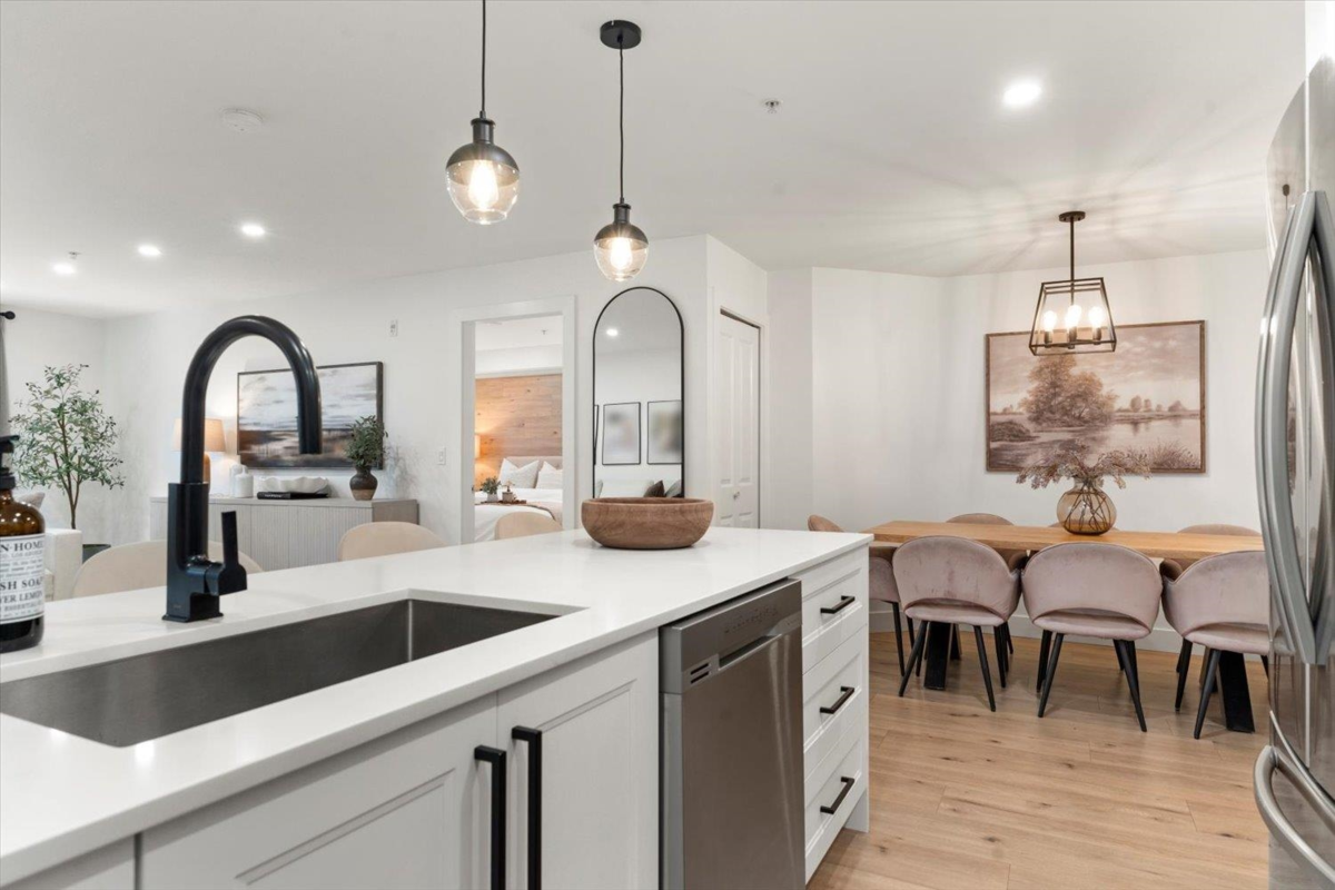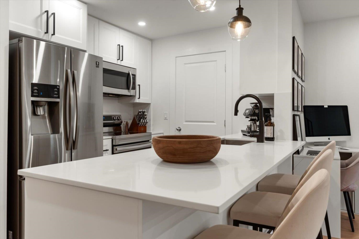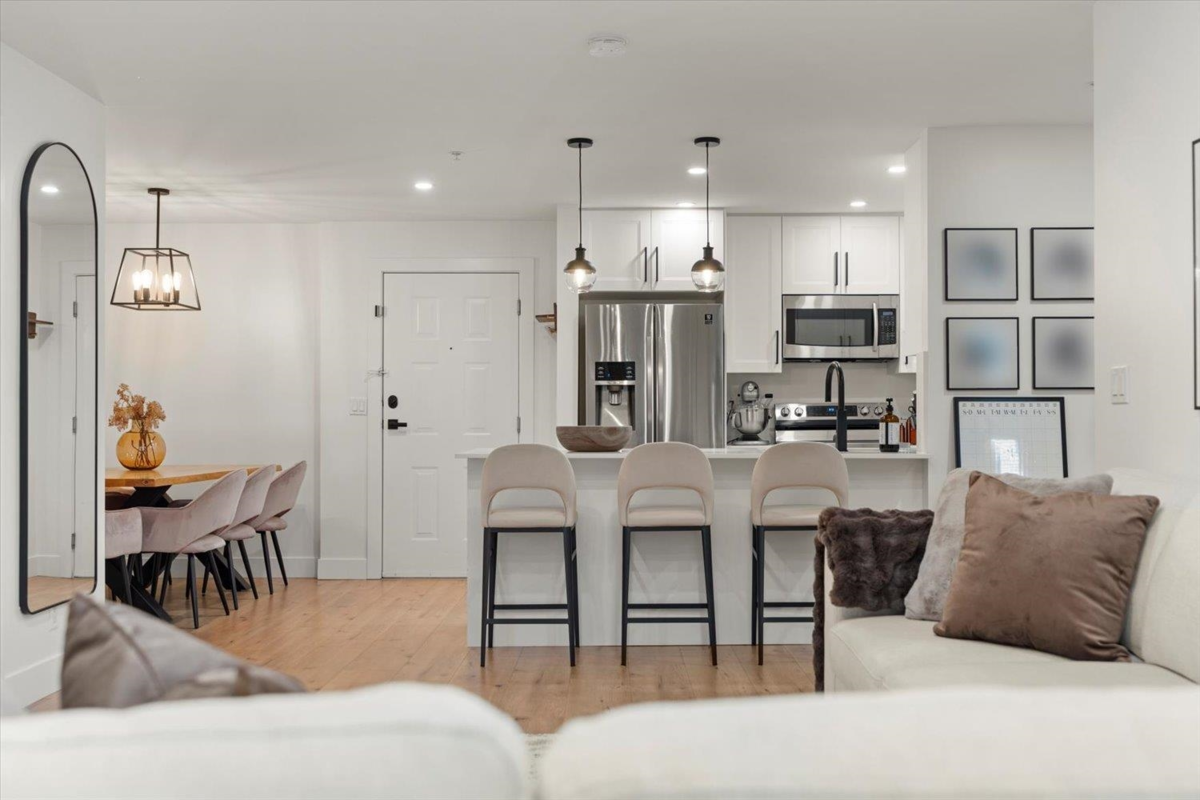 Welcome to this beautifully upgraded, freshly painted 2bed, 2bath unit at Cobblestone. Meticulously renovated from floor to ceiling, the stunning kitchen showcases new cabinetry, quartz countertops, stainless steel appliances, and an extended island ideal for entertaining. Updated laundry and pantry cabinets installed. Additional highlights are elegant Level 5 finished ceilings, laminate floors, tile, baseboards & trim, barn door, feature bedroom wall, closet organizers are just some of the upgrades. Remodeled both bathrooms. Situated in a quiet neighbourhood, with convenient access to transit, parks, shopping, recreation, and HWY 1. This home truly has it all-schedule your private showing today and make this your new home!