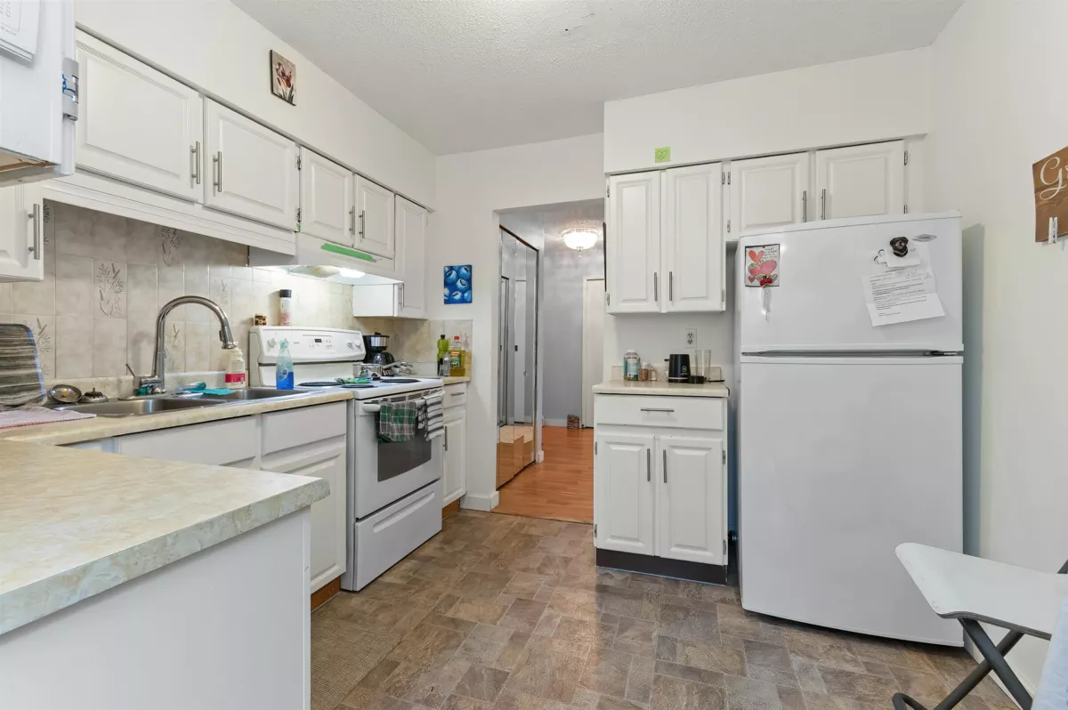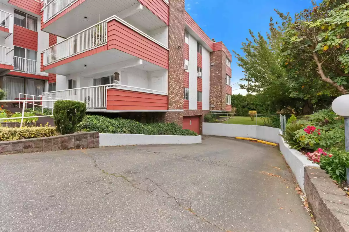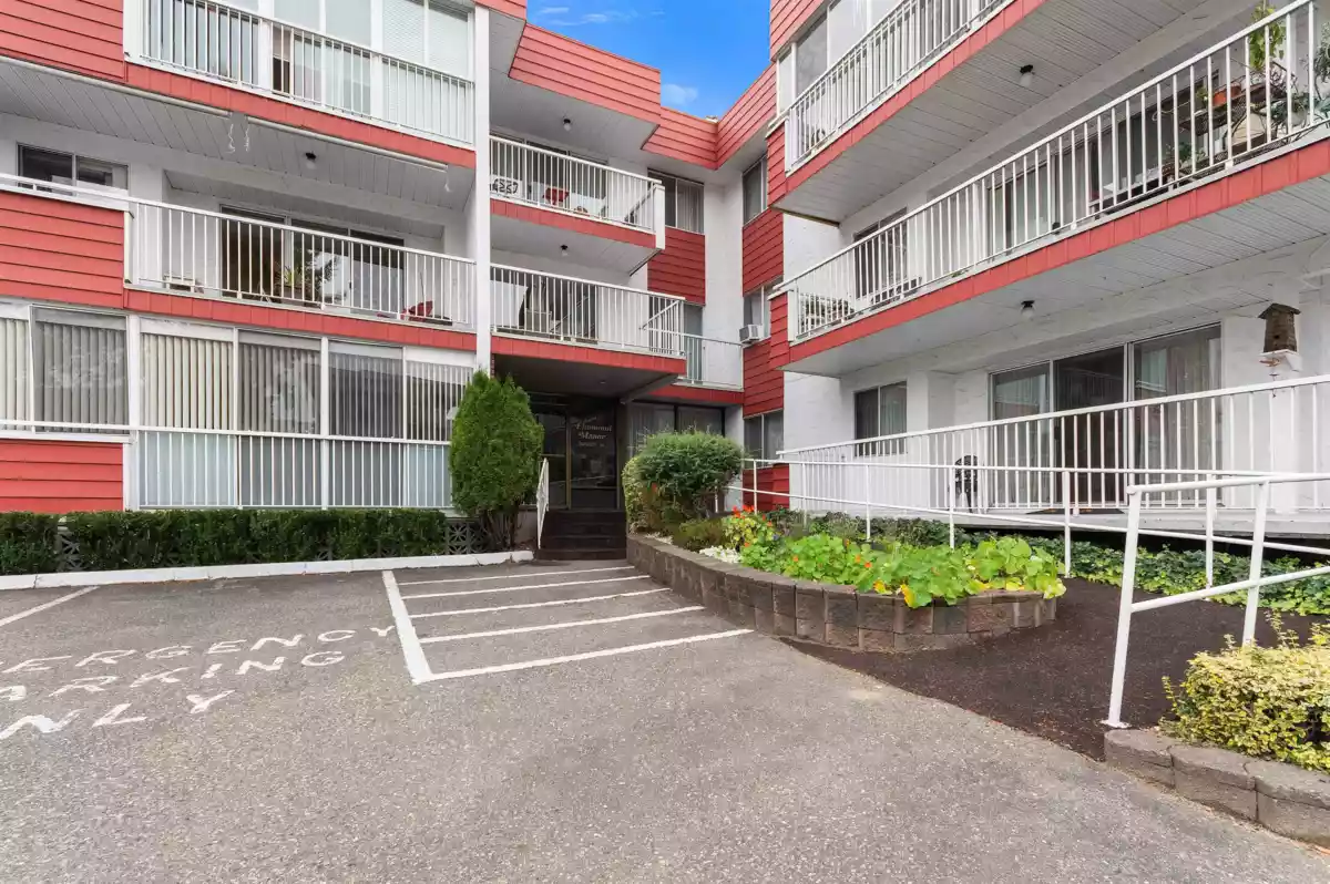 Welcome to Elmwood Manor, a well maintained building just steps away from shopping, recreation, the local library, and public transit. This sprawling 1,150+ sqft corner-unit condo is perfect for those wanting to downsize in a prime location for the right price. Enjoy a covered balcony with storage. Building maintenance is up-to-date and residents can enjoy the exercise centre and sizable recreation room with attached kitchen. One parking spot and storage locker included. Strata includes electricity, heat, water, garbage pickup, snow removal, and gardening. 55+ age restricted, no pets allowed. Call today to book your showing! OPEN HOUSE Sat Jan 17th from 2-4