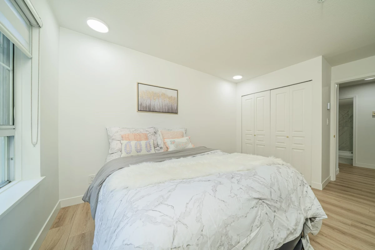 Location, location, location! This spacious 2 bedroom, 2 bathroom Condo of over 1,000 square feet will not disappoint you. It is an ideal choice for the first-time homebuyers or those who want to downsize. The advantage of the corner house is good natural light and ventilation. The two bedrooms are independent of each other ensuring a peaceful distance person space, the distance creates beauty! The entire house was renovated 2025. Property renovation: full installation of rain screens, replacement of siding, installation of elevators, and complete renovation of indoor common areas and terraces. The location is convenient to transportation, with easy access to the Royal Oak Skytrain Station, and there are parks and shopping centers nearby. No presentation of offers until on 20 Jan, 2026@6PM