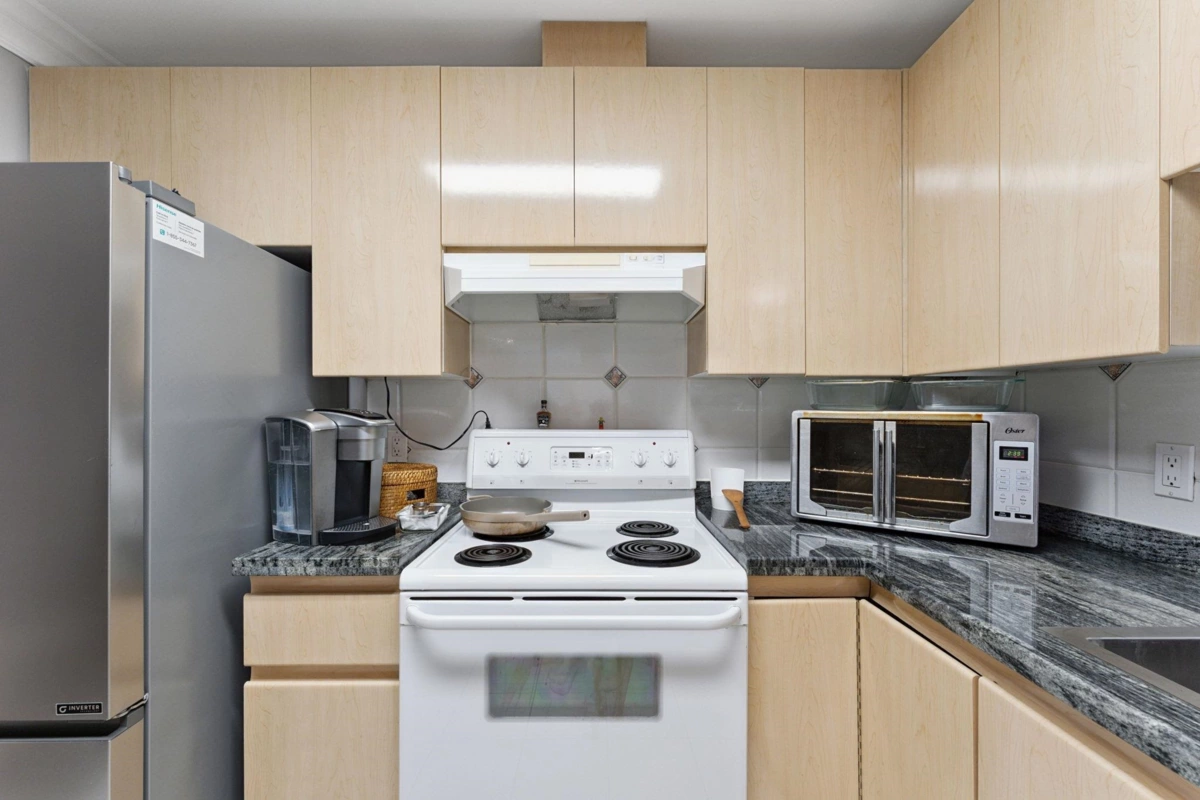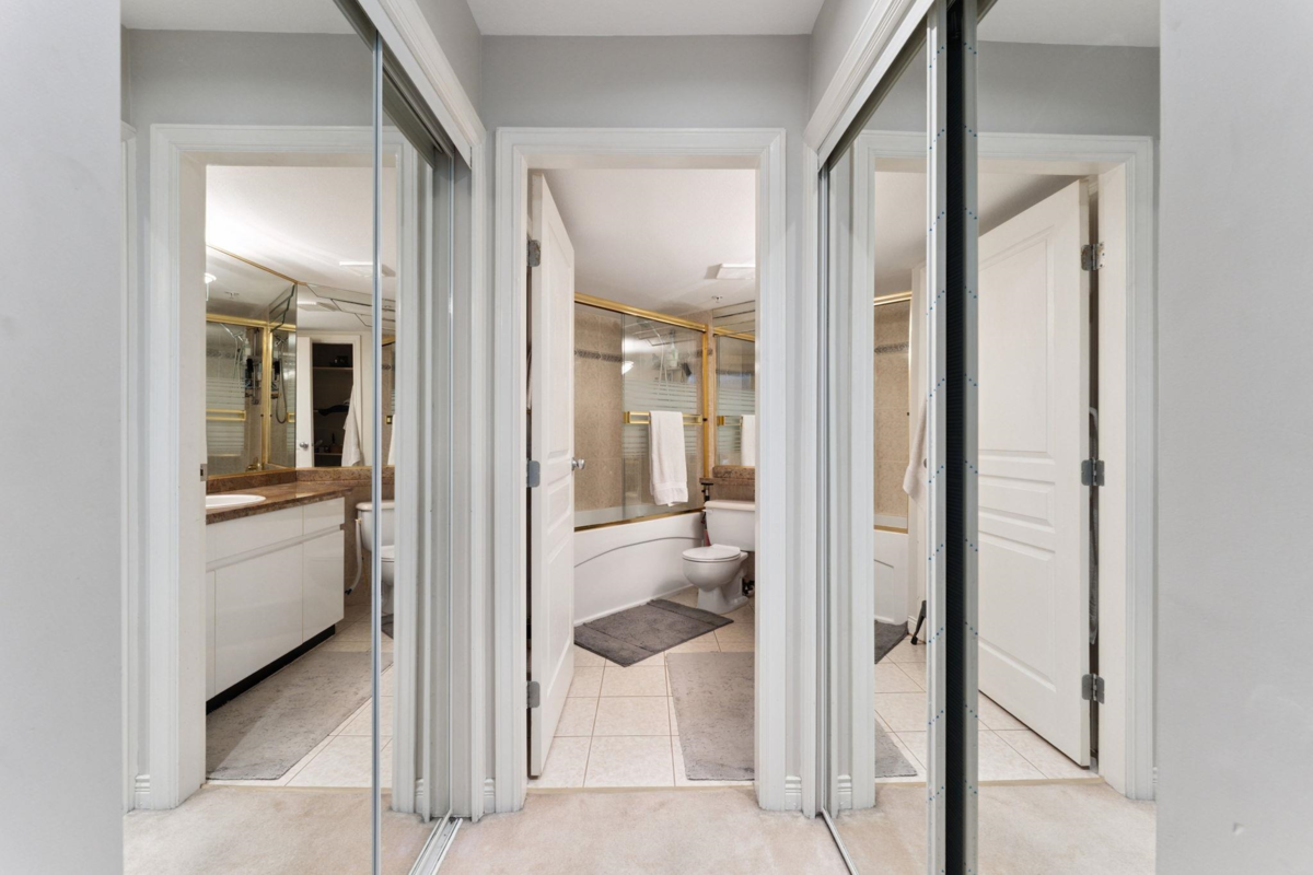 Step into comfort and convenience with this beautifully updated 2-bed/2-bath suite in the sought-after Crossing. Boasting a spacious open-concept layout, this home offers the perfect blend of modern updates and functional design. Enjoy a large primary suite featuring ample closet space and a private ensuite. The second bedroom and full bath are ideal for guests, family, or a home office. The large, nearly balcony is accessible from both the living room and bedroom—perfect for relaxing or entertaining. The updated kitchen shines with gorgeous countertops and a brand-new sink, adding a modern touch. Tucked away on a quiet cul-de-sac, yet just steps from shopping, restaurants, transit, and more.