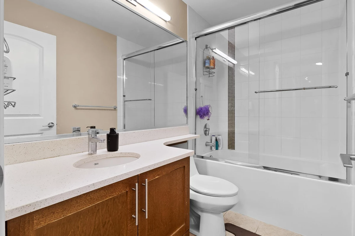 Welcome to this bright and spacious 2 bed, 2 bath corner unit located in the heart of Surrey! This beautifully maintained home offers a functional open layout with large windows that fill the space with natural light. The modern kitchen features elegant quartz countertops, stainless steel appliances, and plenty of cabinet space. The primary bedroom includes an ensuite with a luxurious jacuzzi tub for ultimate relaxation. Enjoy the convenience of being close to shopping, restaurants, schools, parks, and major transit routes. Perfect for first-time buyers, small families, or investors looking for a great opportunity in a prime location!