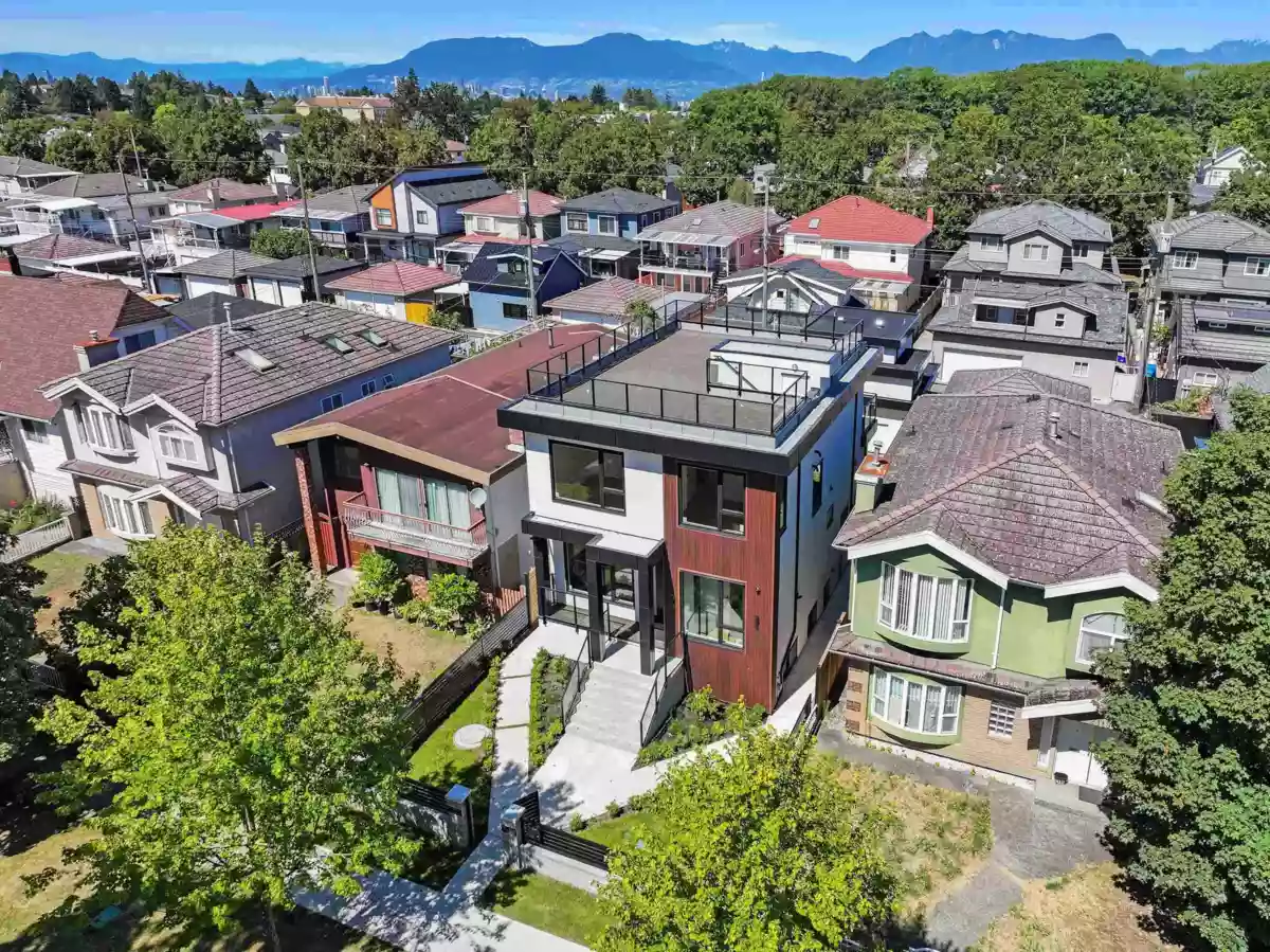 Luxury living at its finest in East Vancouver! This brand-new, custom-built 3-level residence in the heart of Killarney showcases exceptional craftsmanship and thoughtful design throughout. Offering over 3,500 aq ft of living space, this impressive home features 8 bedrooms and 7 bathrooms, including three spacious bedrooms upstairs for the main remidence, a main-floor office, and a large Theatre room with bath. Enjoy outstanding income potential with a 2-bedroom legal suite plus a 3-bedroom laneway house-ideal for extended family or significant mortgage assistance.The home is finished to the highest standards with premium Dacor appliances, quartz countertops, custom millwork, triple-glazed windows, and air conditioning for year-round comfort ,Home Automation ,Massive Rooftop and much more.