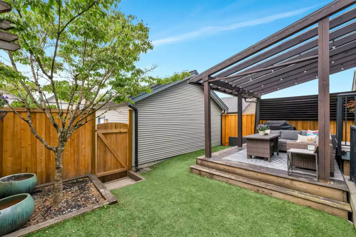 Great, quiet Yorkson south area with fantastic neighbours! This Penta built home includes an authorized 1 bdrm (could be 2) bsmt suite! Great mortgage helper! Thoughtful layout on main offers a den and separate dining rm, currently used as a flex space. Kitchen has loads of cabinetry, and island/prep with seating for 2. Step out to the custom, covered deck and your newly fenced private yard, with room to gather and barbeque year round. Up has 3 bdrms including primary with vaulted ceiling, 4 pc ensuite and walk in closet. Down has an additional bdrm for personal use or could be added to the legal suite! Double garage has side by side parking for 2 plus an extra spot on the pad. Location is great with all amenities, school and freeway close ~ perfect for commuters! Brand new H/W Tank!