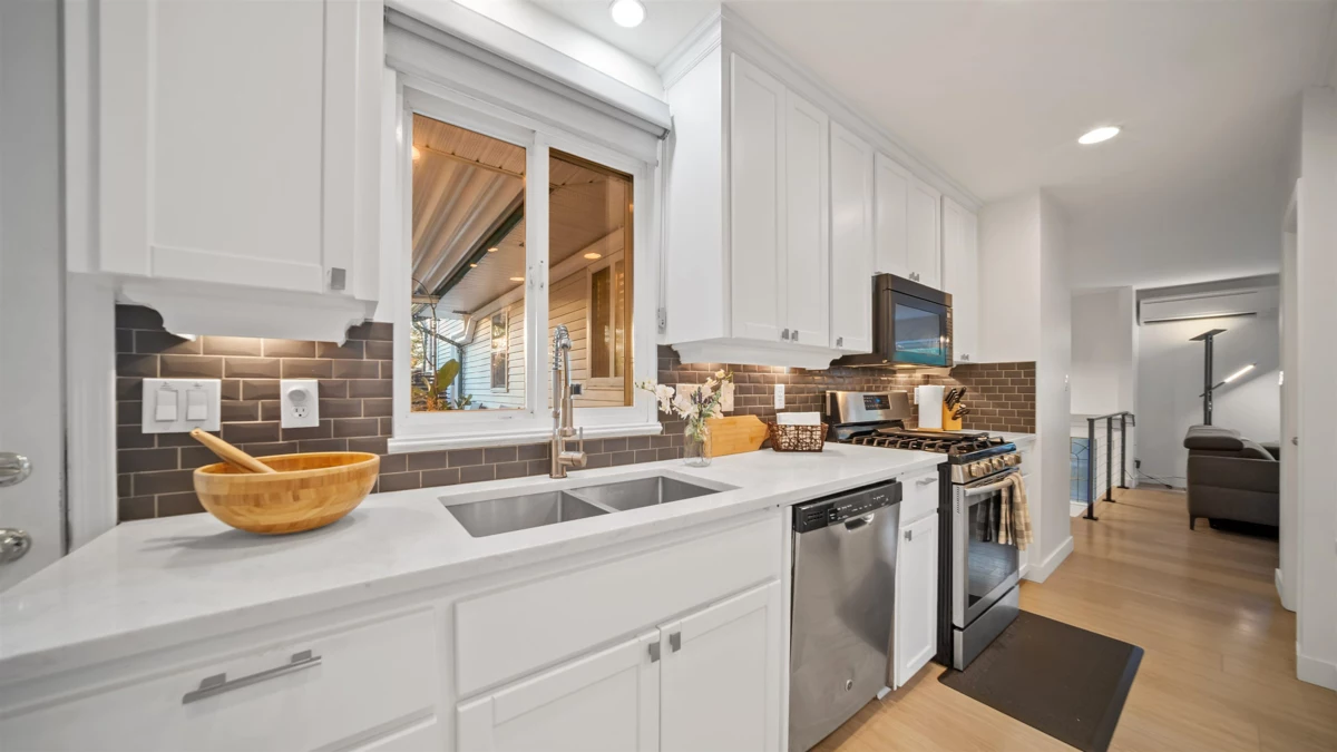 Discover this stunningly renovated 5 bedroom + den + entertainment room, 5 bathroom home in the popular Northwest Maple Ridge community! With 3,264 sq.ft. of living space on an 8,179 sq.ft. lot, the home showcases over $300,000 in quality upgrades, including a new roof, updated flooring, heated bathroom floor, modern lighting, A/C heat pumps, and a new hot water tank. The main floor features a bright open concept design with a quartz kitchen and a spacious covered composite deck ideal for gatherings. The lower level offers two adaptable living spaces with private entrances, perfect for a mortgage helper, in-law suite, or guest use. The yard is professionally landscaped and includes a fire pit, RV parking, and an outdoor cabana toilet. A truly move in ready family home & turn key ready!!